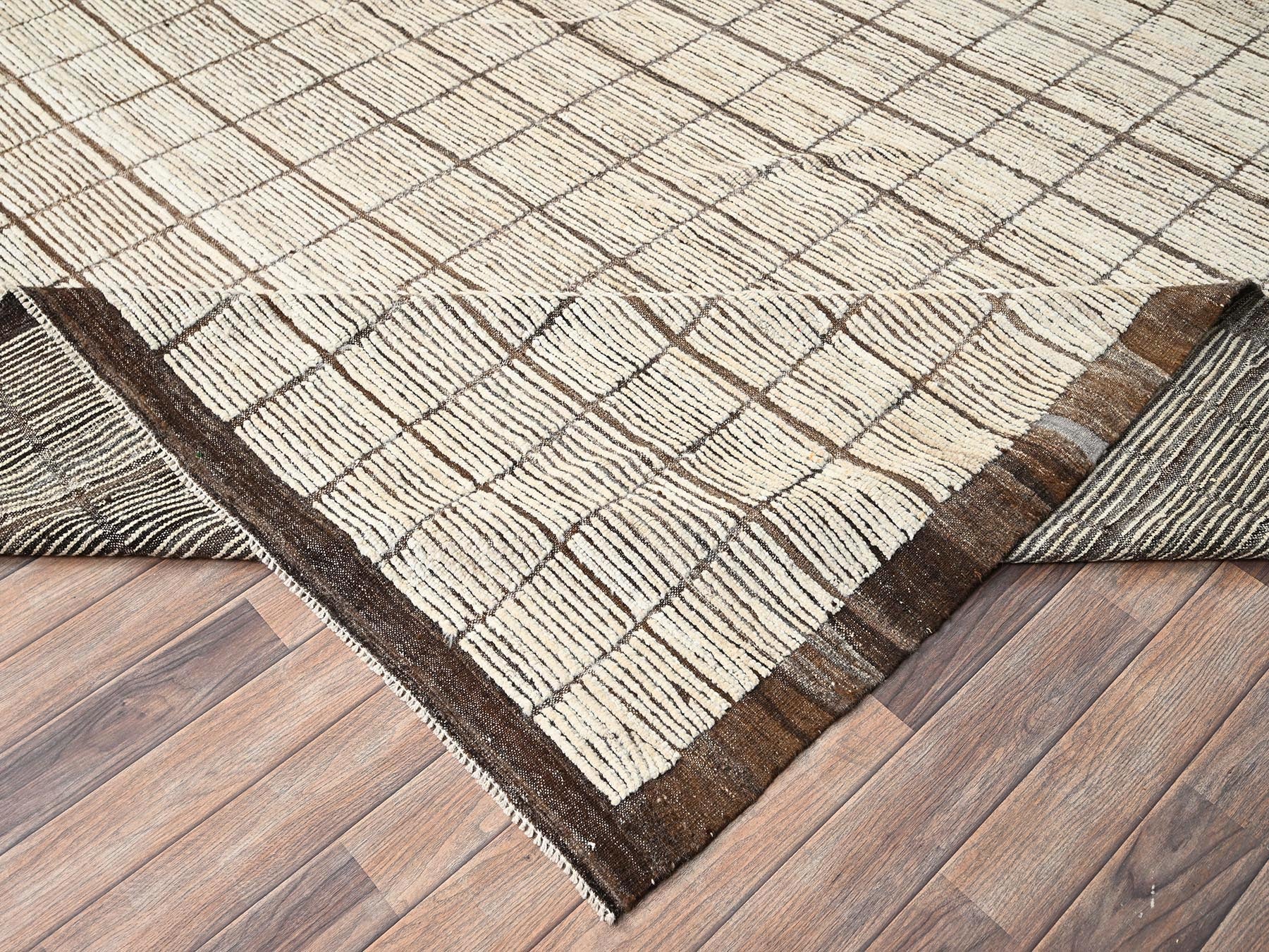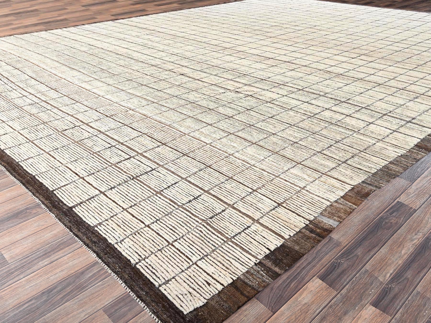13'3" x 19'7" New Hand Knotted Ivory Wool Rectangle Oriental Rug - MOA1021434