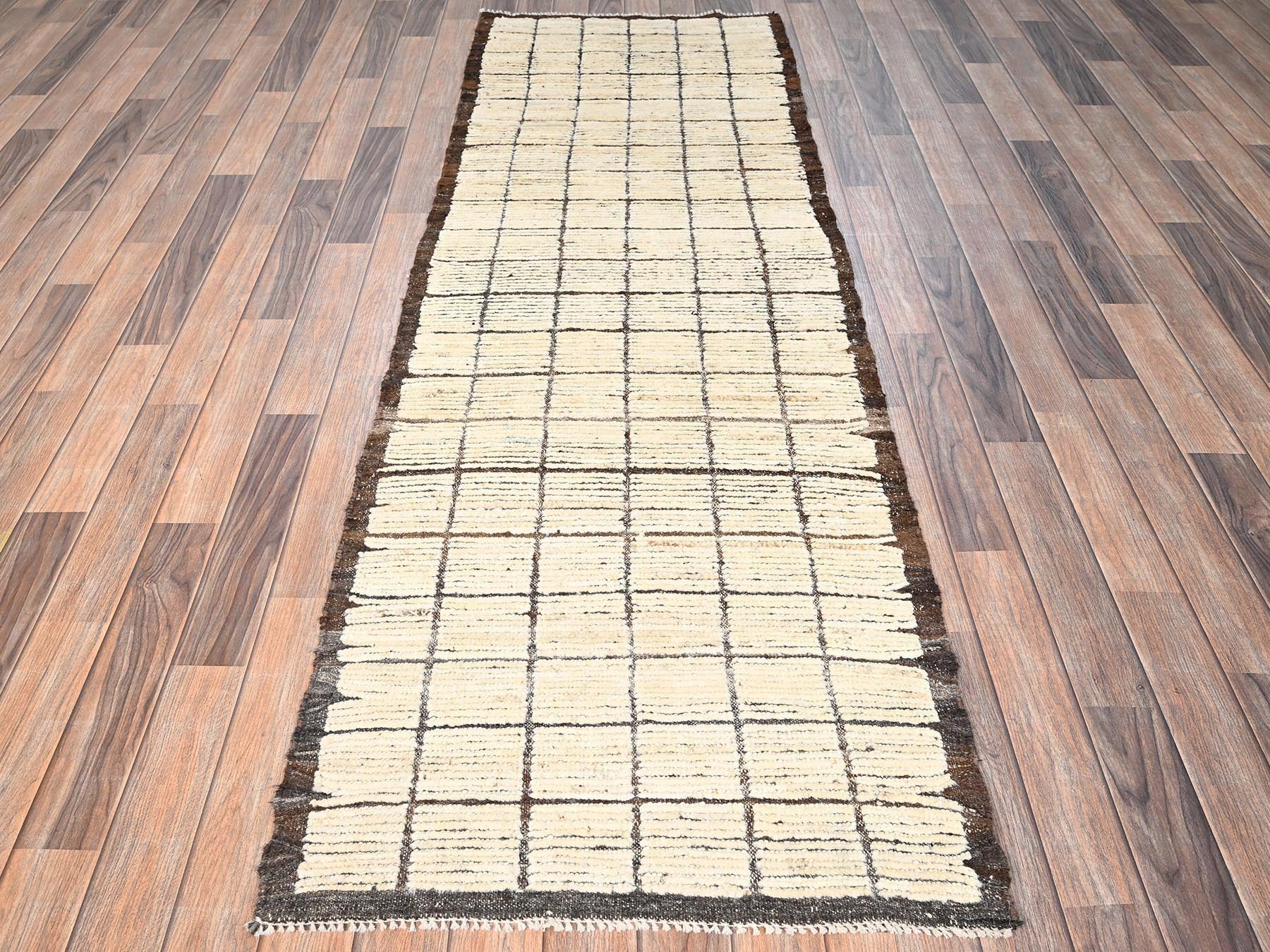 2'7" x 7'10" New Hand Knotted Ivory Wool Runner Oriental Rug - MOA1021772