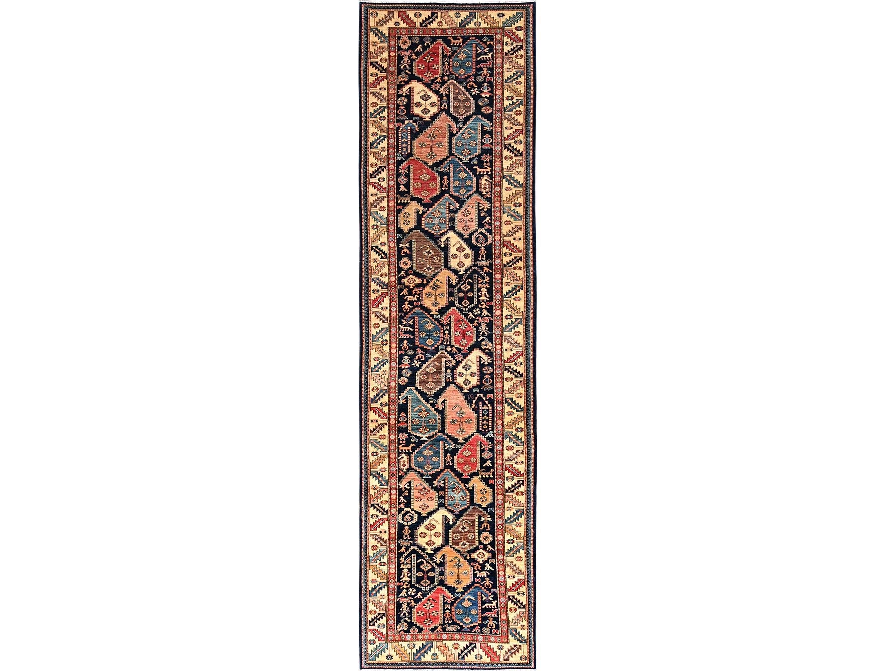 4'2" x 17'9" New Hand Knotted Blue Wool Runner Oriental Rug - MOA1021636