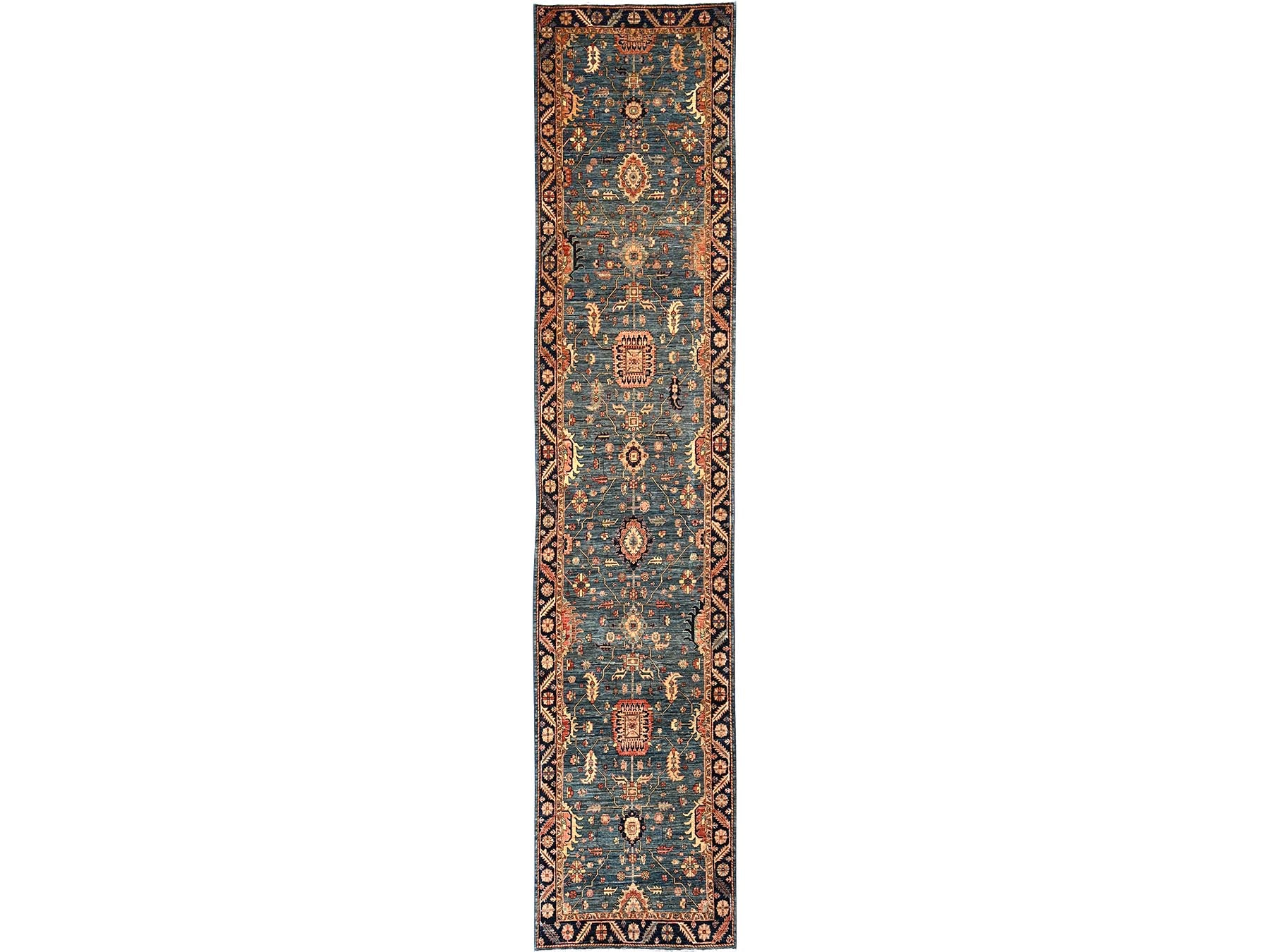 4'3" x 19'0" New Hand Knotted Blue Wool Runner Oriental Rug - MOA1021632