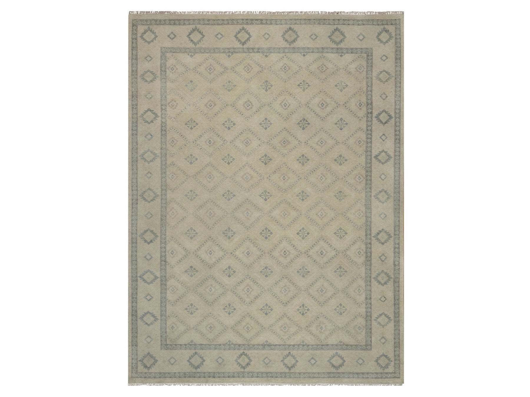 9'0" x 12'0" New Hand Knotted Ivory Wool Rectangle Oriental Rug - MOA10291720