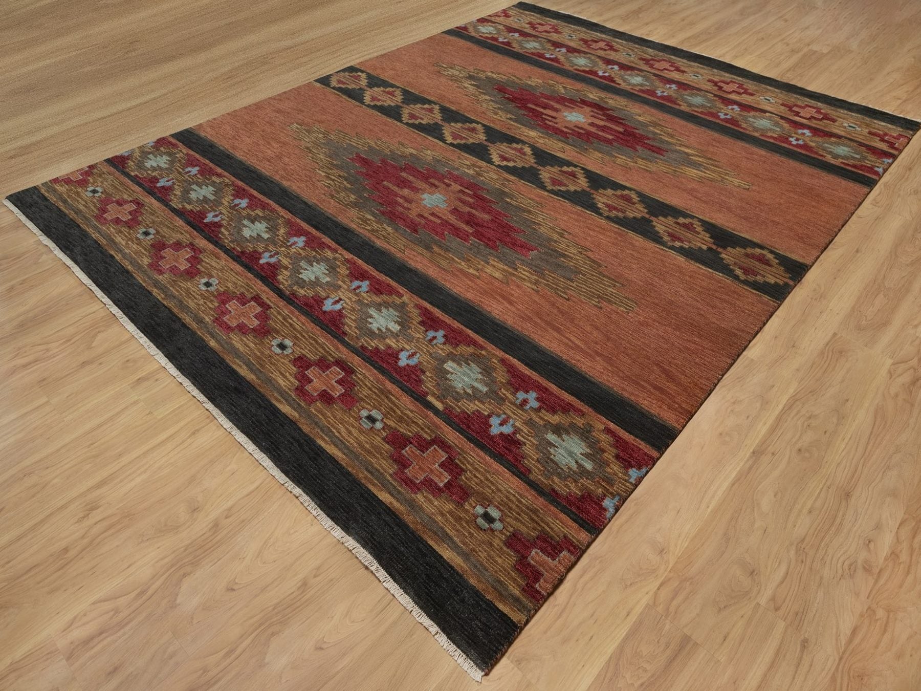 9'1" x 12'0" New Hand Knotted Brown Wool Rectangle Oriental Rug - MOA10291444