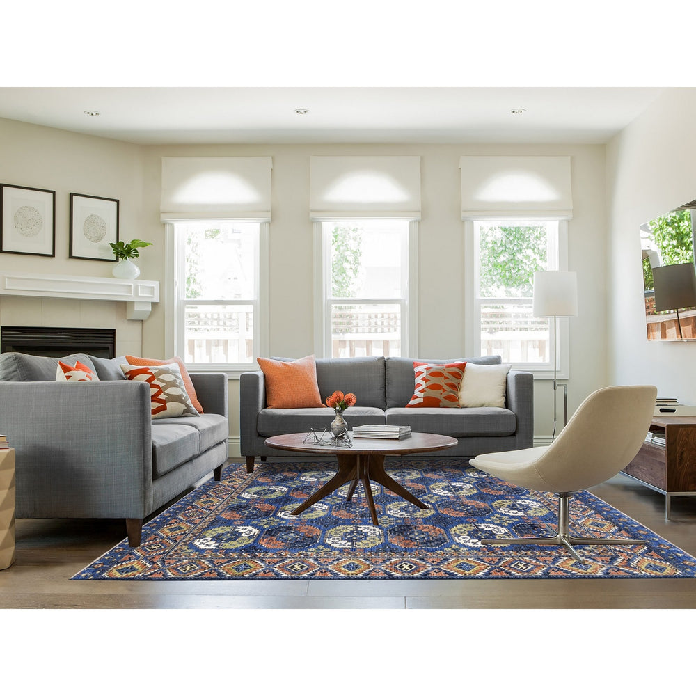 9'5" x 12'0" New Hand Knotted Blue Wool Rectangle Oriental Rug - MOA10267263