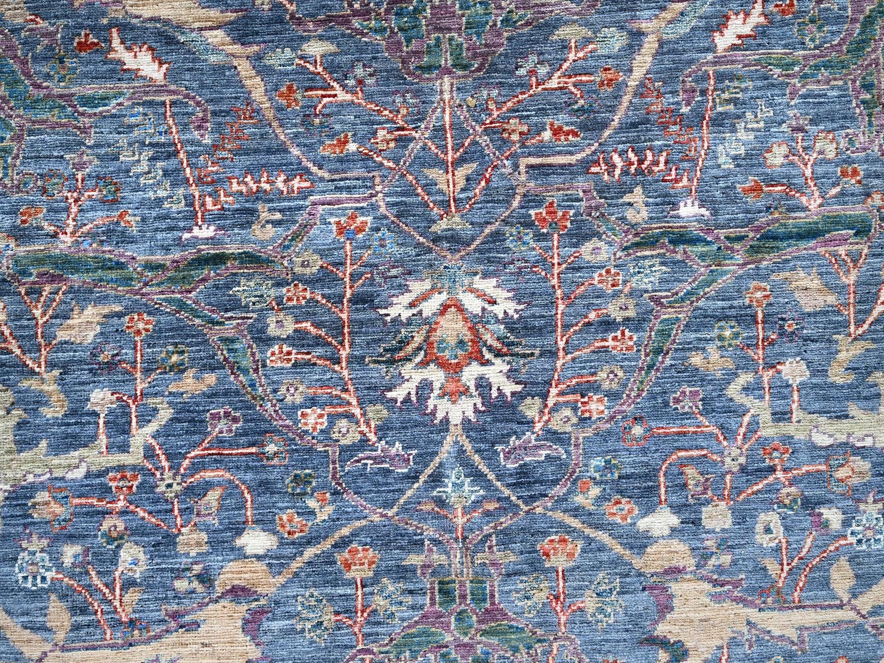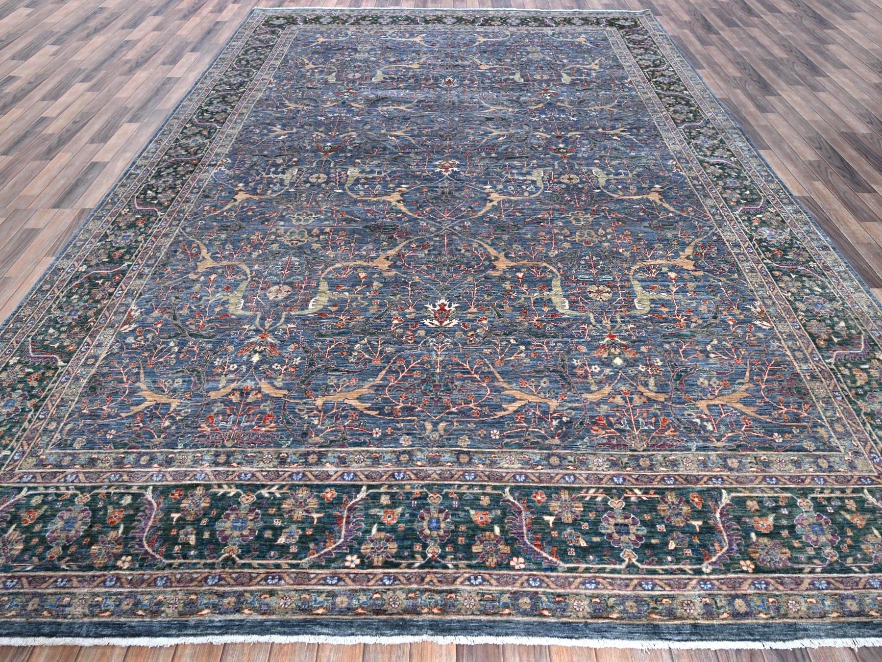 9'7" x 13'9" New Hand Knotted Blue Wool Rectangle Oriental Rug - MOA10285874