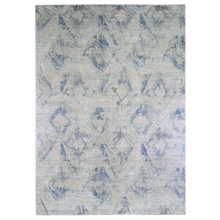 10'0" x 14'1" New Hand Knotted Ivory Wool & Silk Rectangle Oriental Rug - MOA10266443