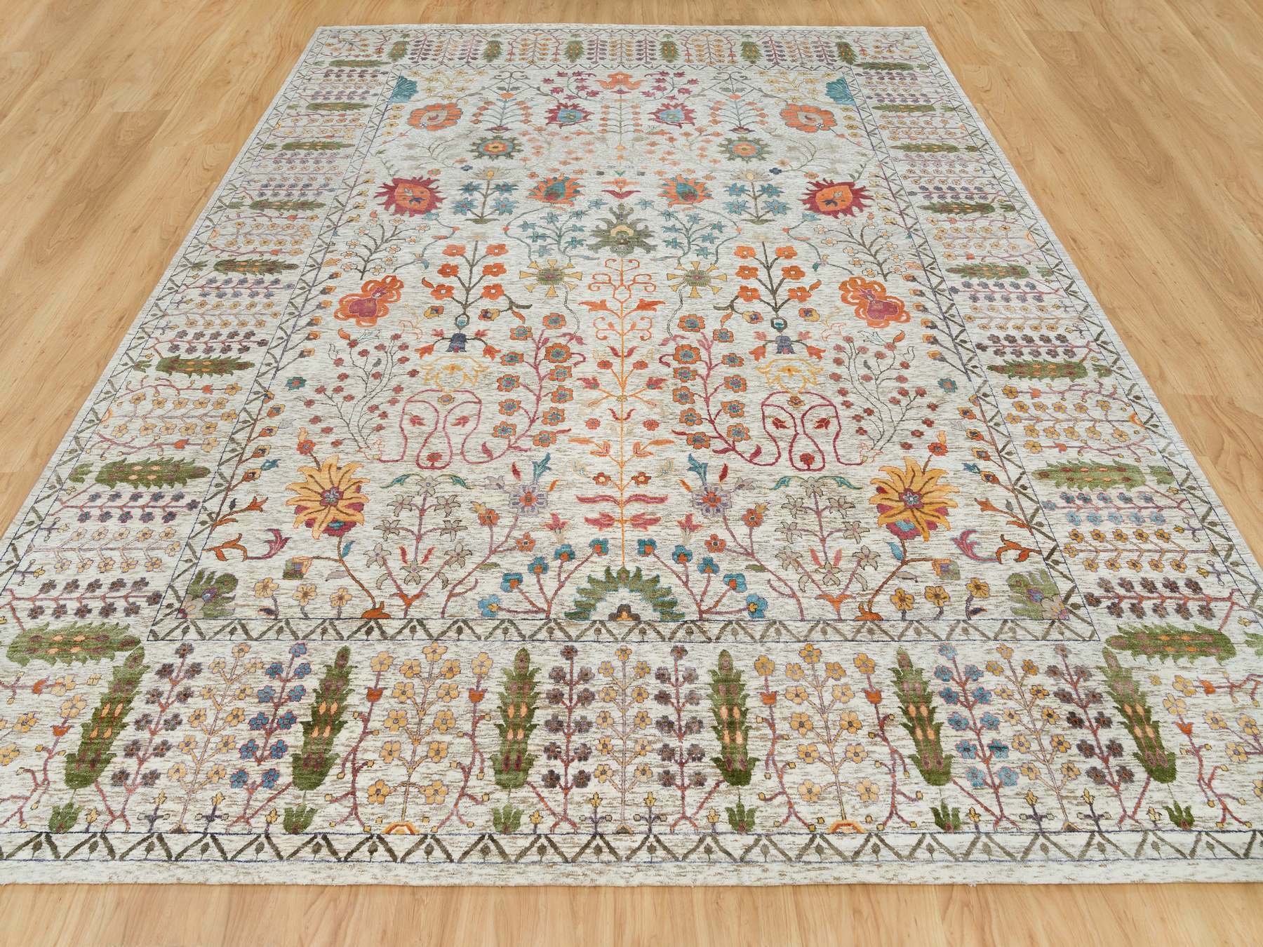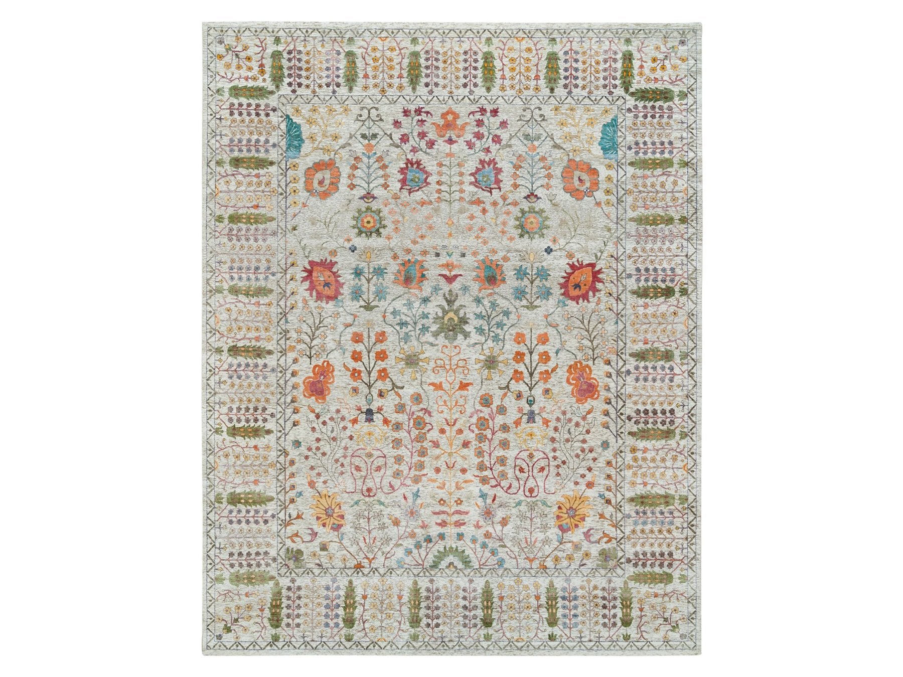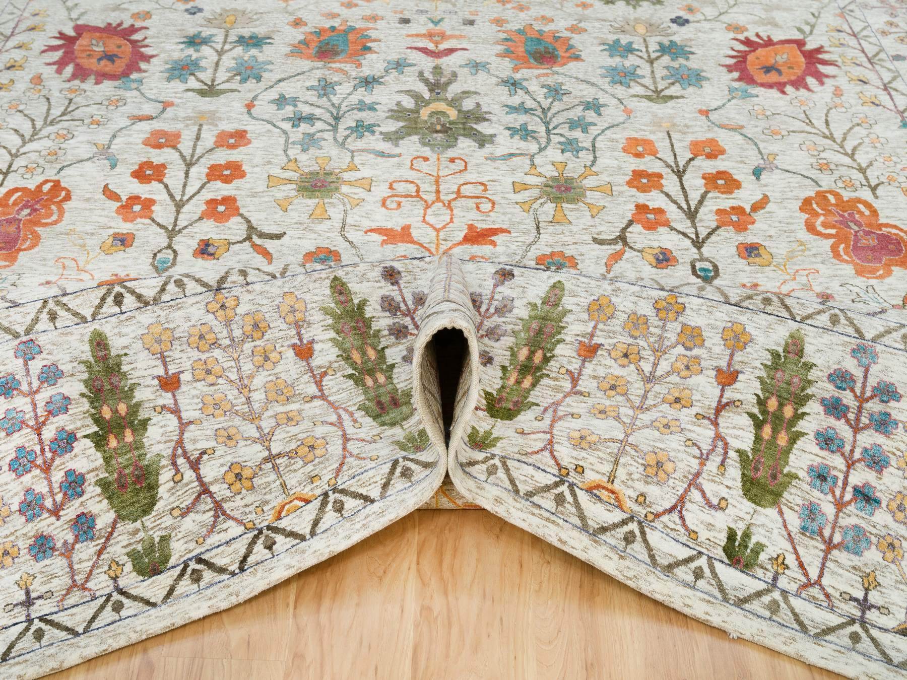 12'1" x 15'4" New Hand Knotted Brown Wool & Silk Rectangle Oriental Rug - MOA10265936