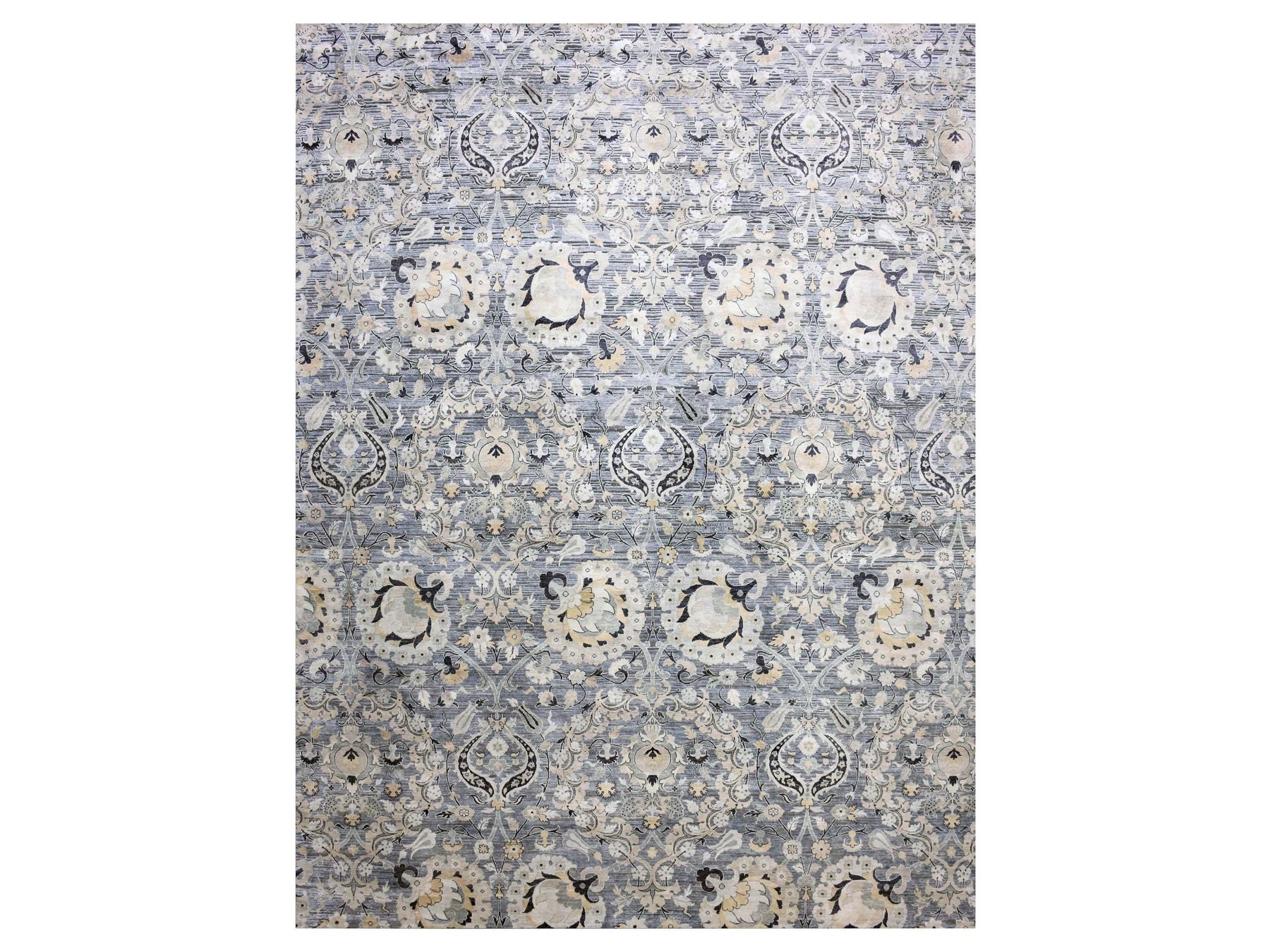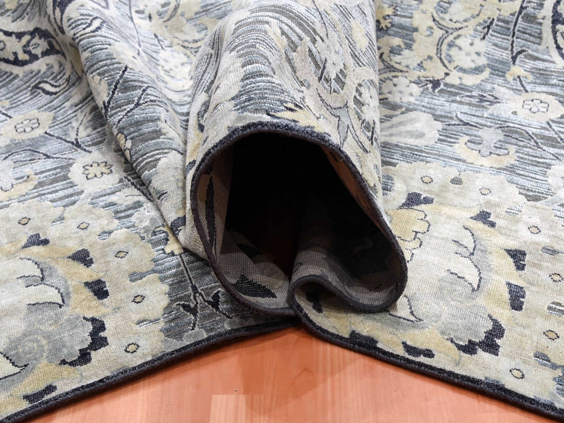 12'2" x 15'4" New Hand Knotted Grey Wool & Sari Silk Rectangle Oriental Rug - MOA10275117