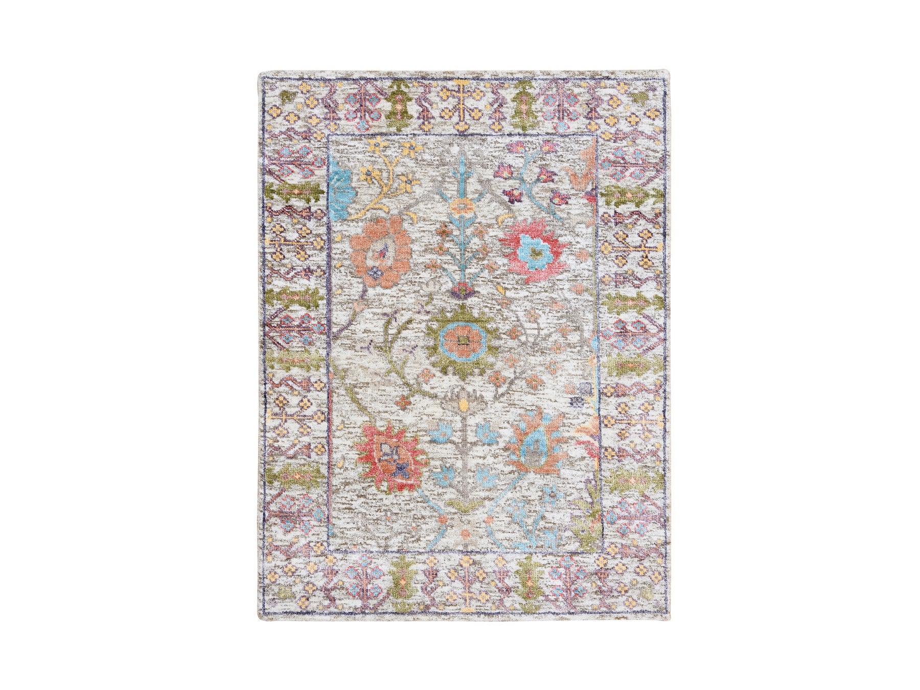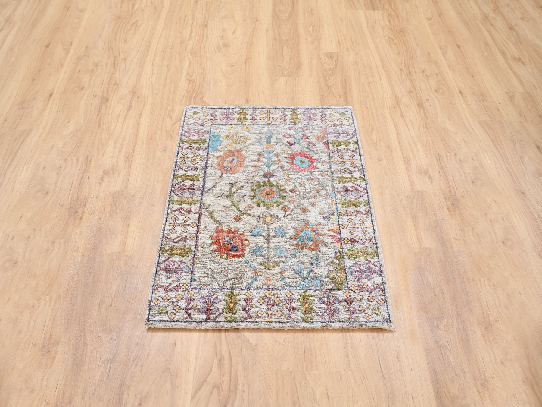 2'3" x 3'2" New Hand Knotted Beige Wool & Silk Rectangle Oriental Rug - MOA10263743