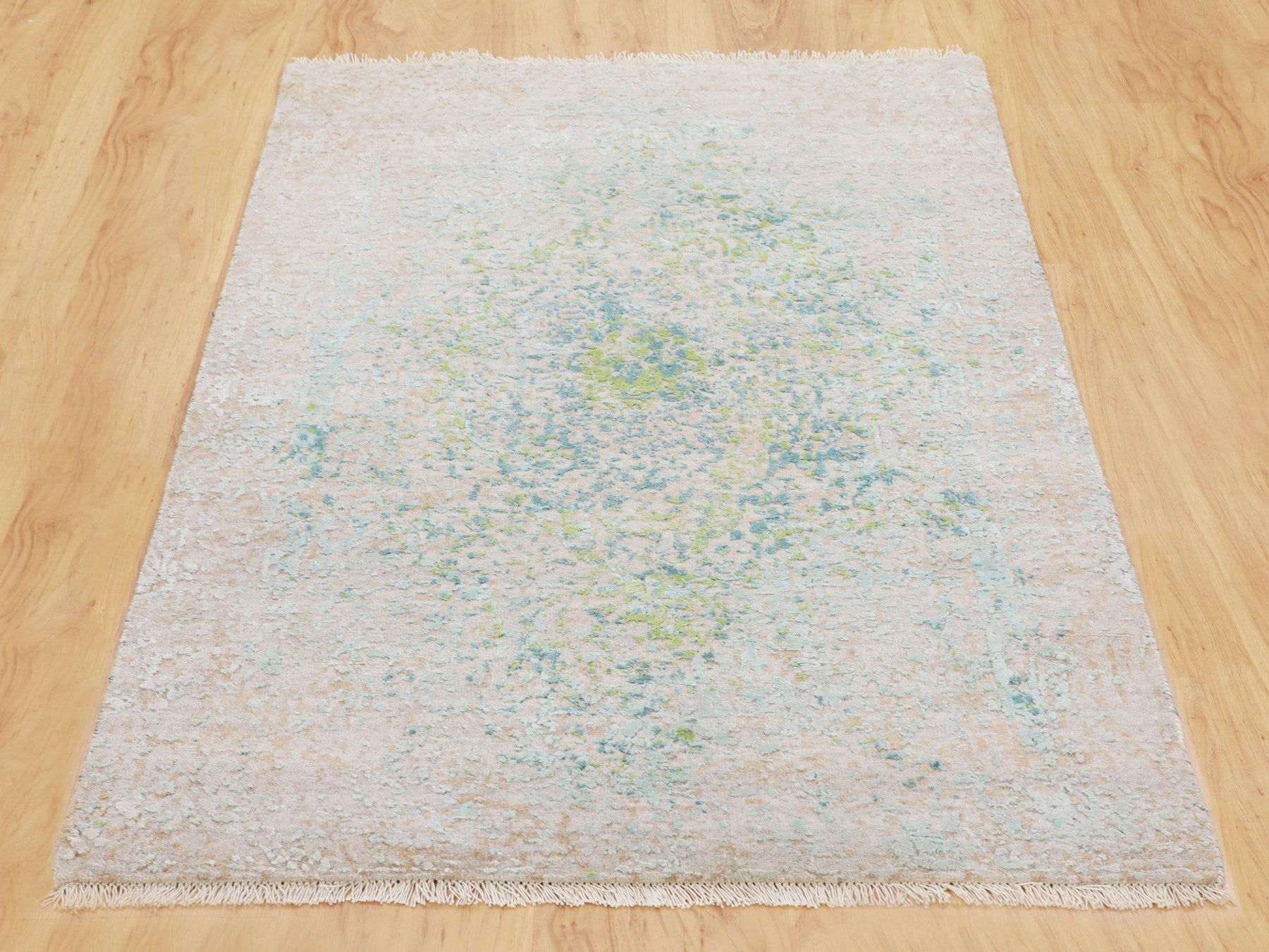 3'0" x 5'0" New Hand Knotted Ivory Wool & Pure Silk Rectangle Oriental Rug - MOA10258103