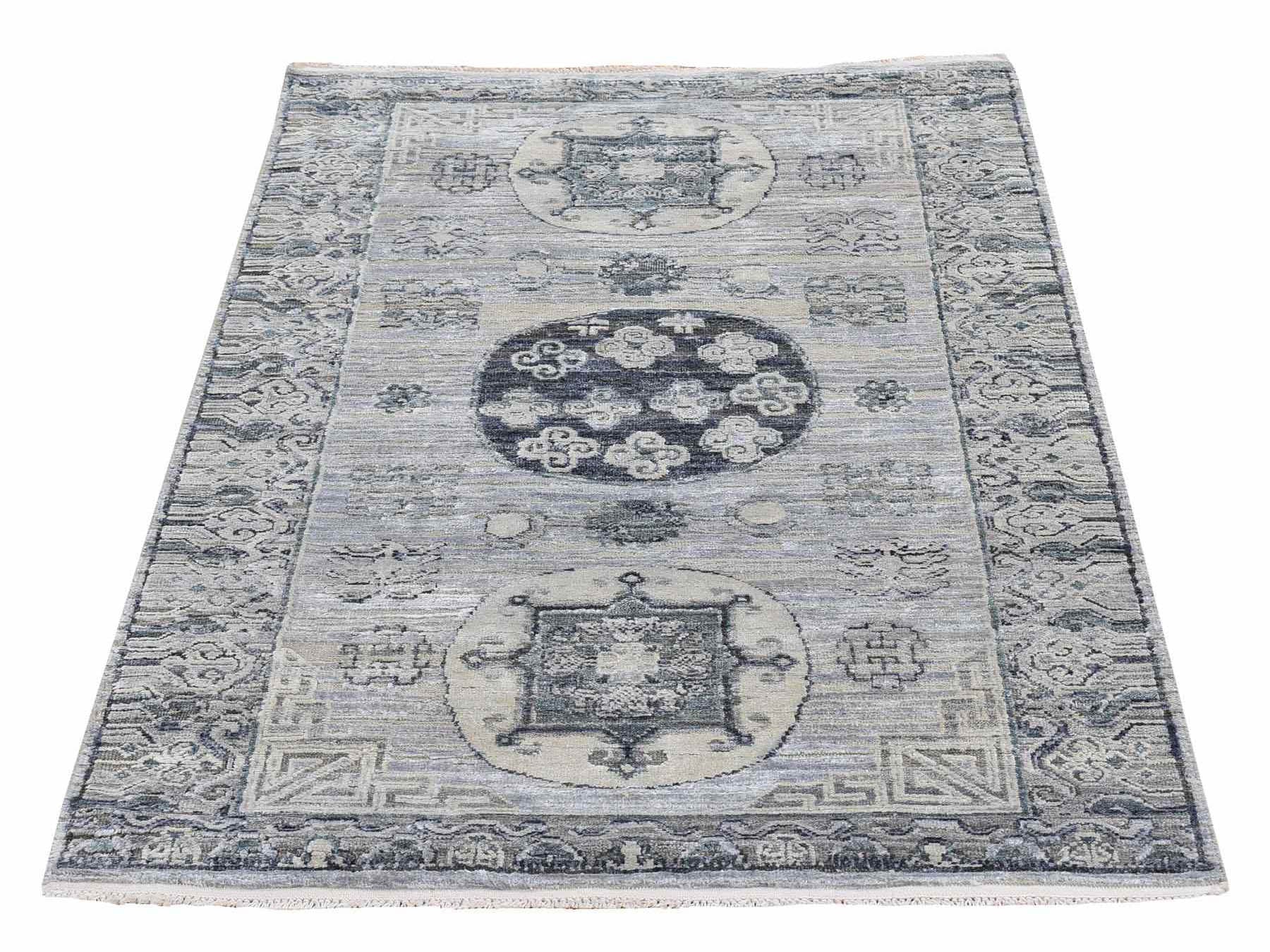 3'0" x 5'2" New Hand Knotted Grey Wool & Silk Rectangle Oriental Rug - MOA10259954