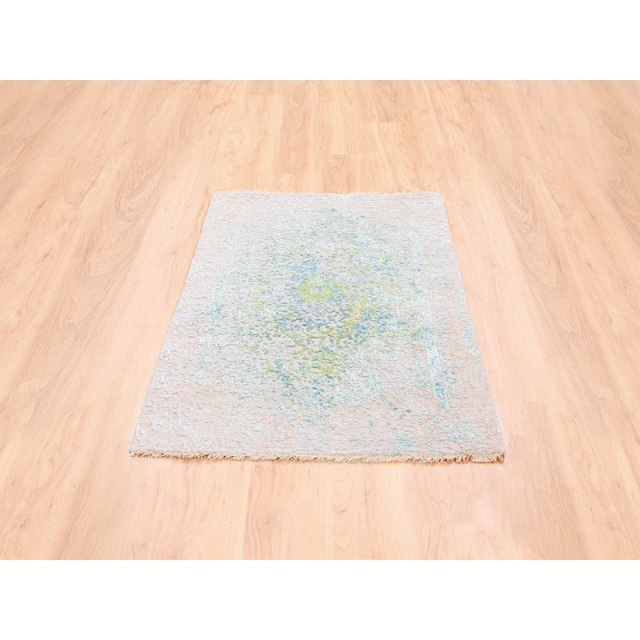 3'1" x 5'0" New Hand Knotted Ivory Wool & Pure Silk Rectangle Oriental Rug - MOA10262362
