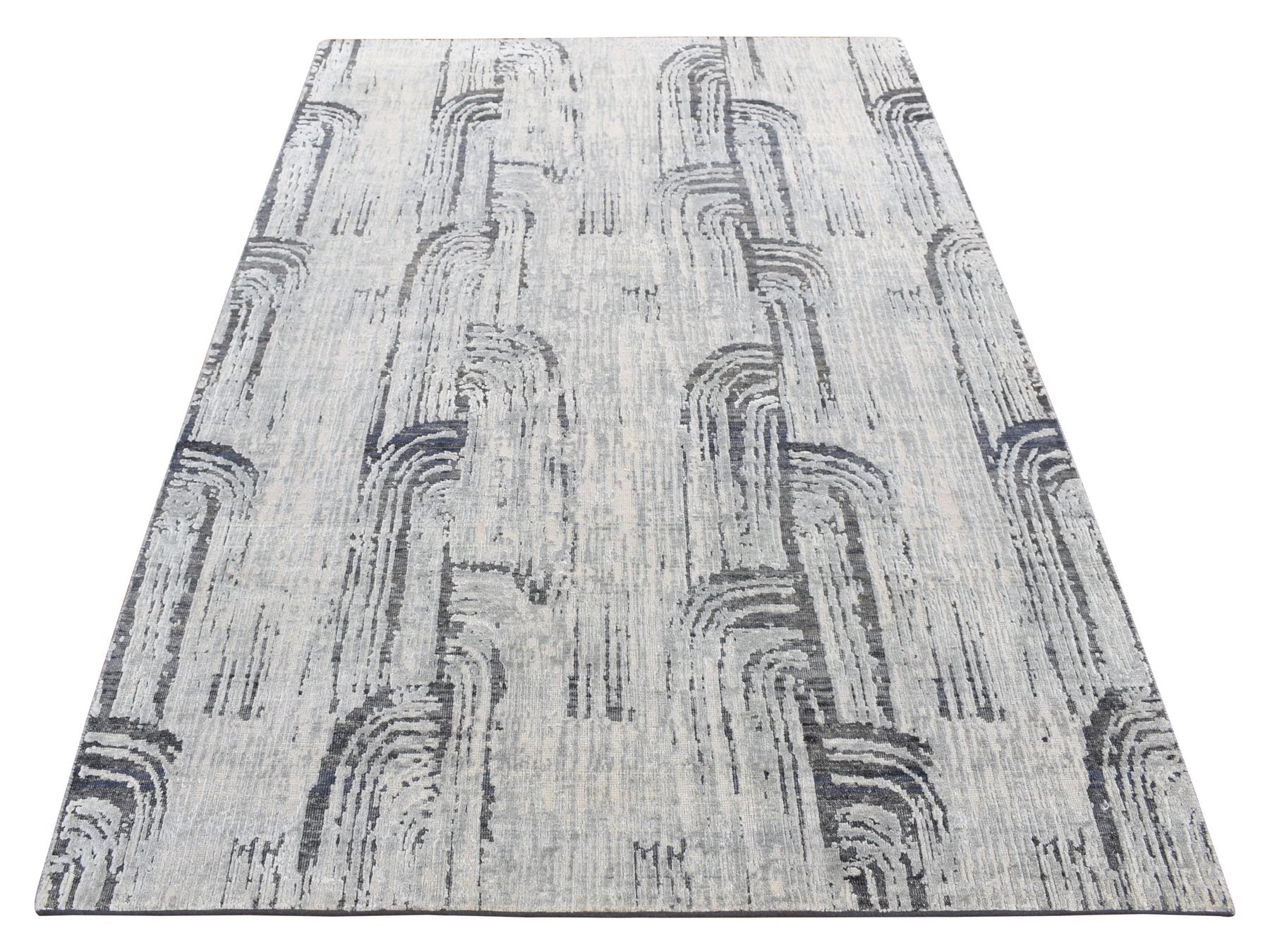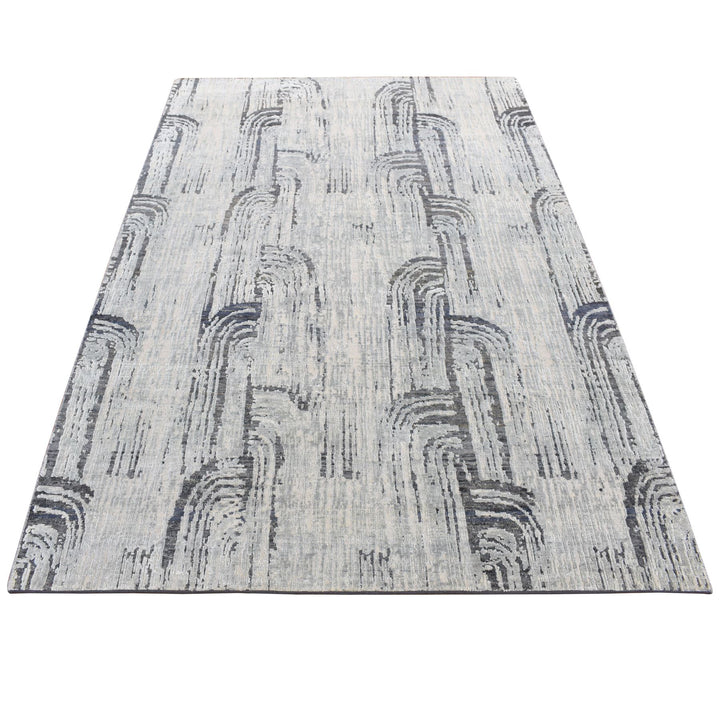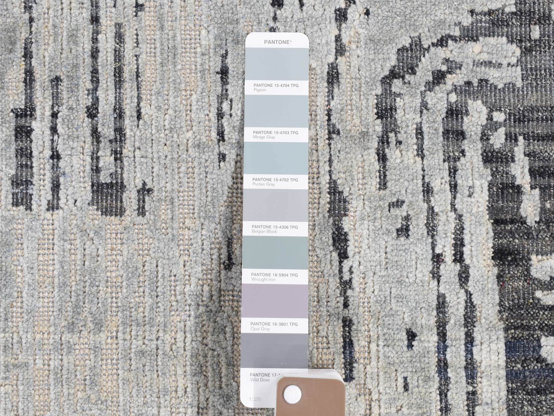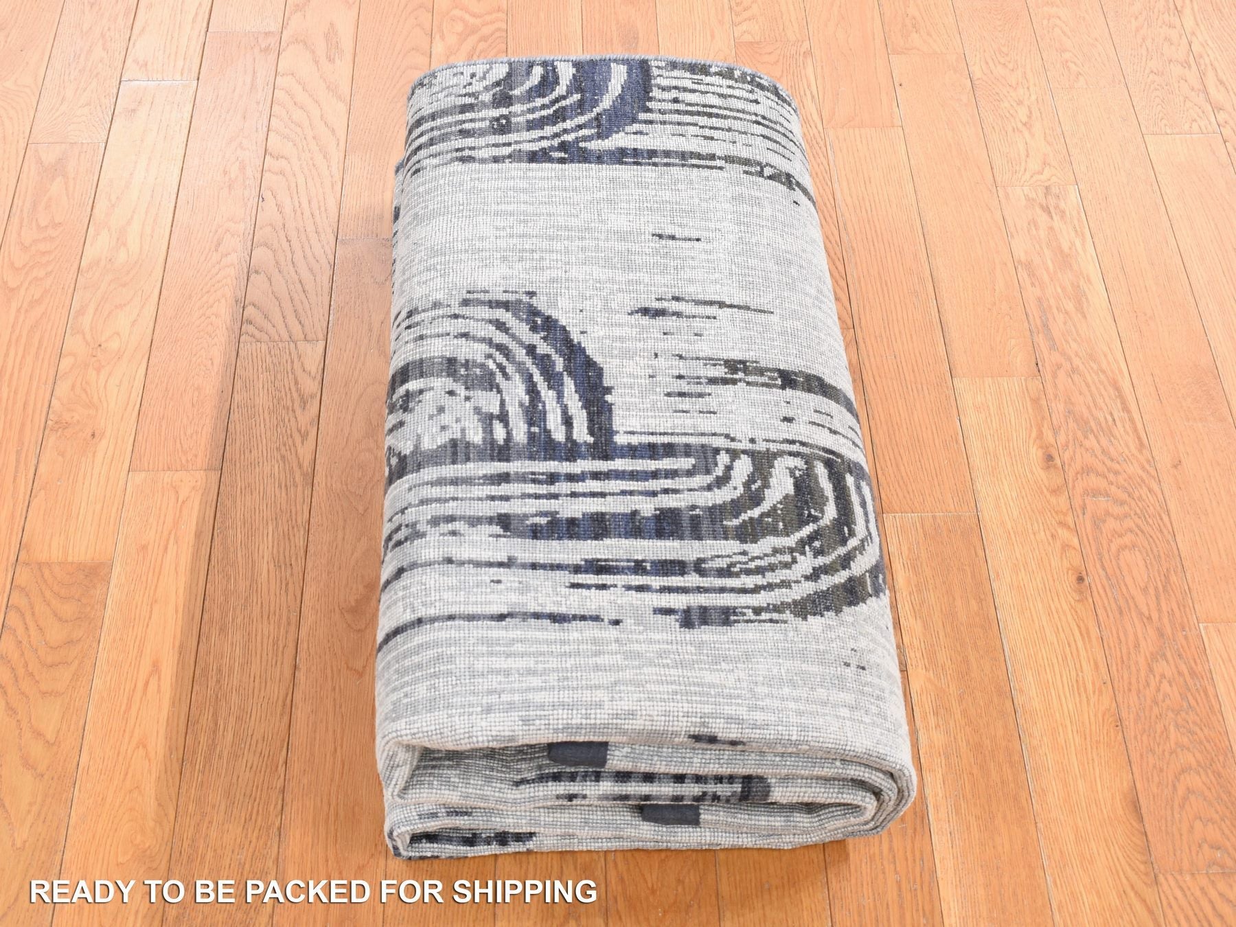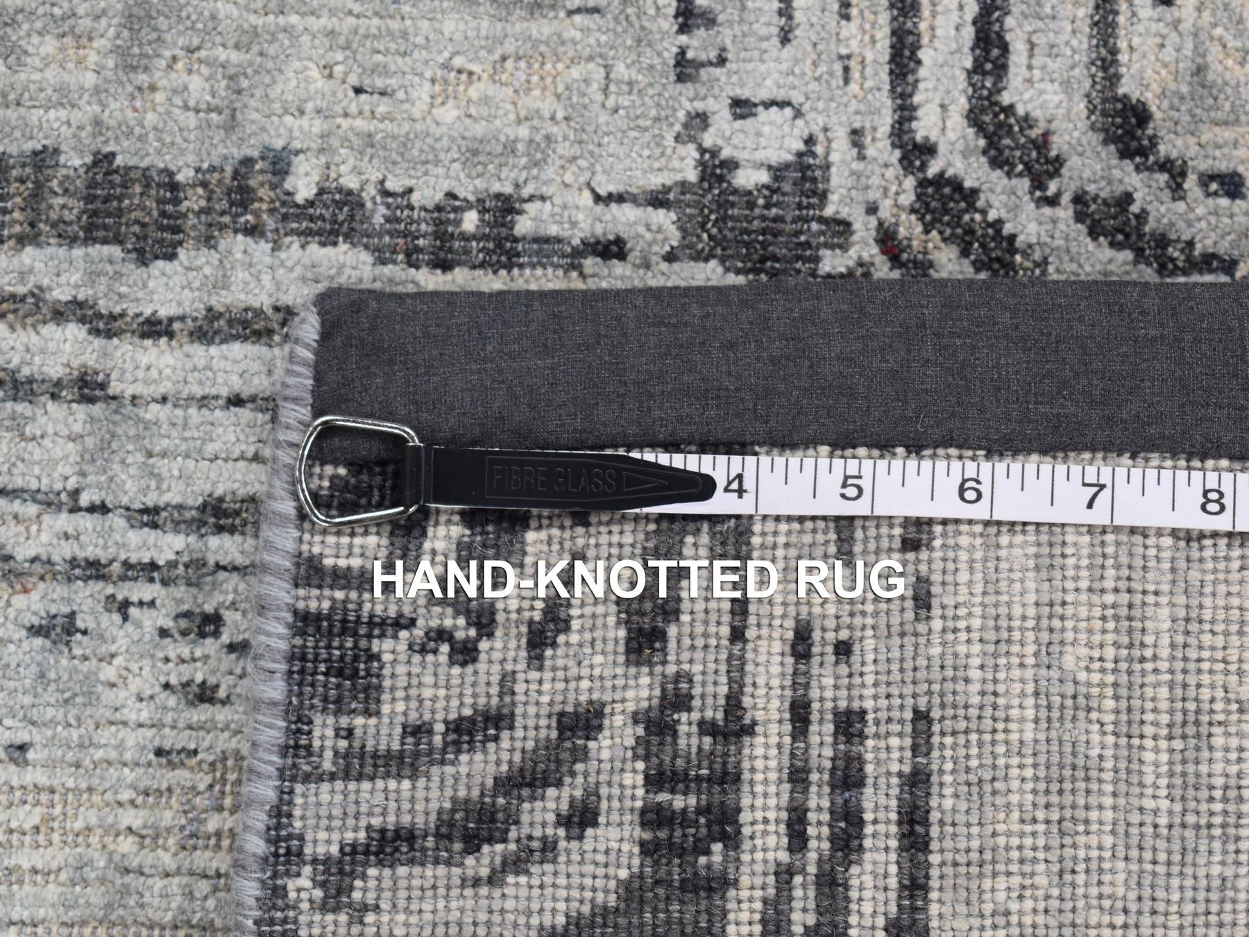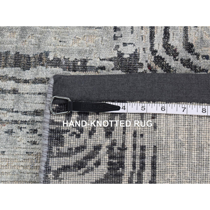 5'0" x 7'1" New Hand Knotted Grey Wool & Pure Silk Rectangle Oriental Rug - MOA10280768