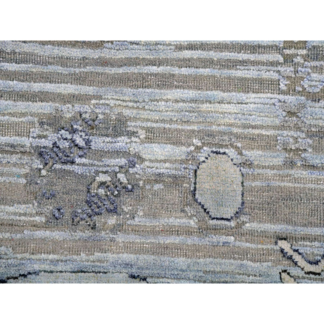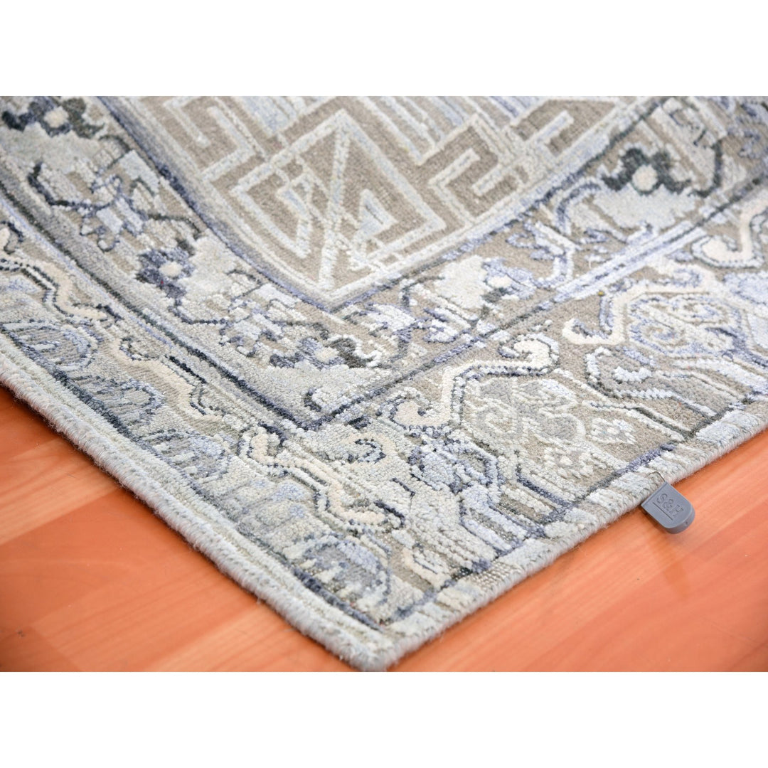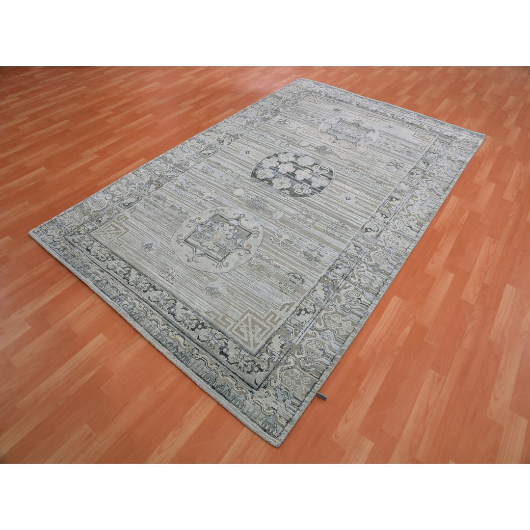 6'0" x 9'6" New Hand Knotted Grey Wool & Silk Rectangle Oriental Rug - MOA10275431