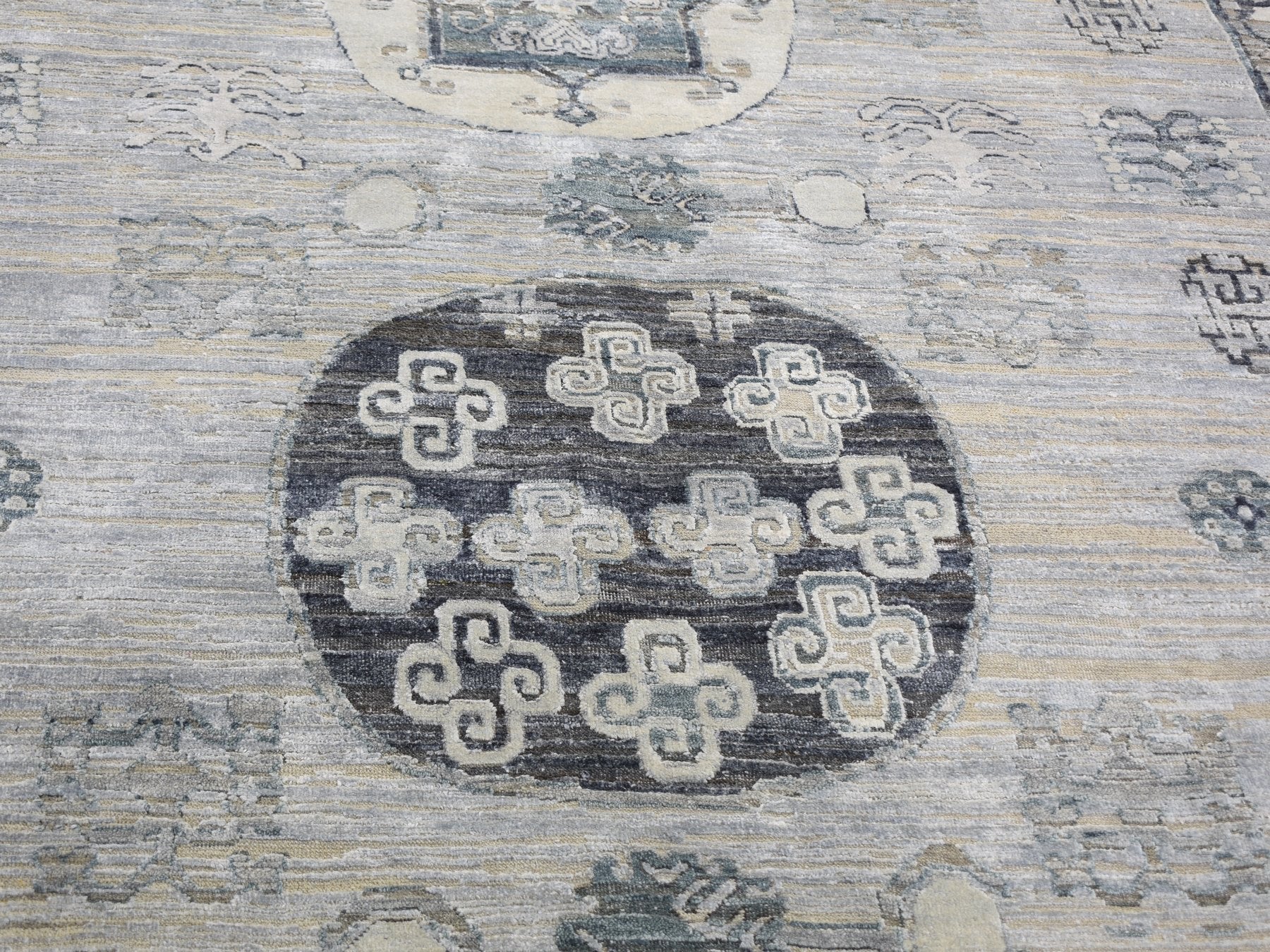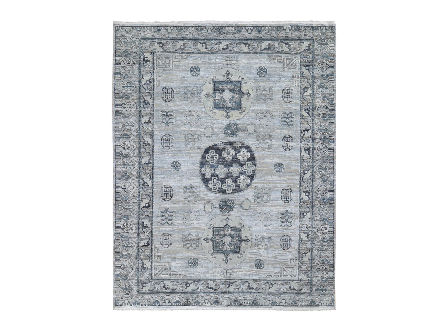 7'9" x 9'10" New Hand Knotted Grey Wool & Silk Rectangle Oriental Rug - MOA10259261