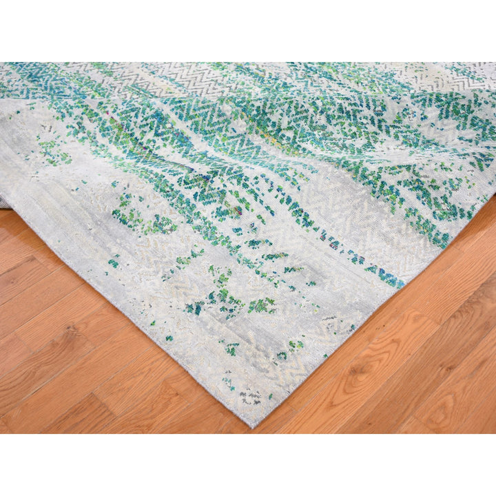 8'10" x 12'0" New Hand Knotted Ivory Wool & Sari Silk Rectangle Oriental Rug - MOA10259224