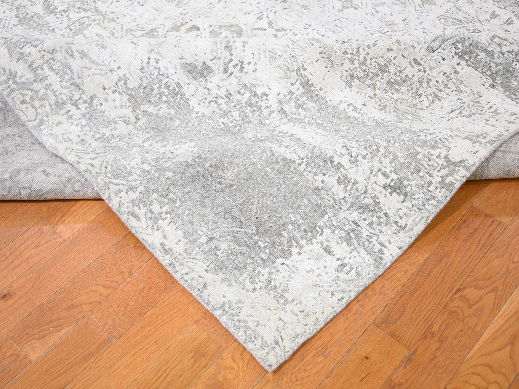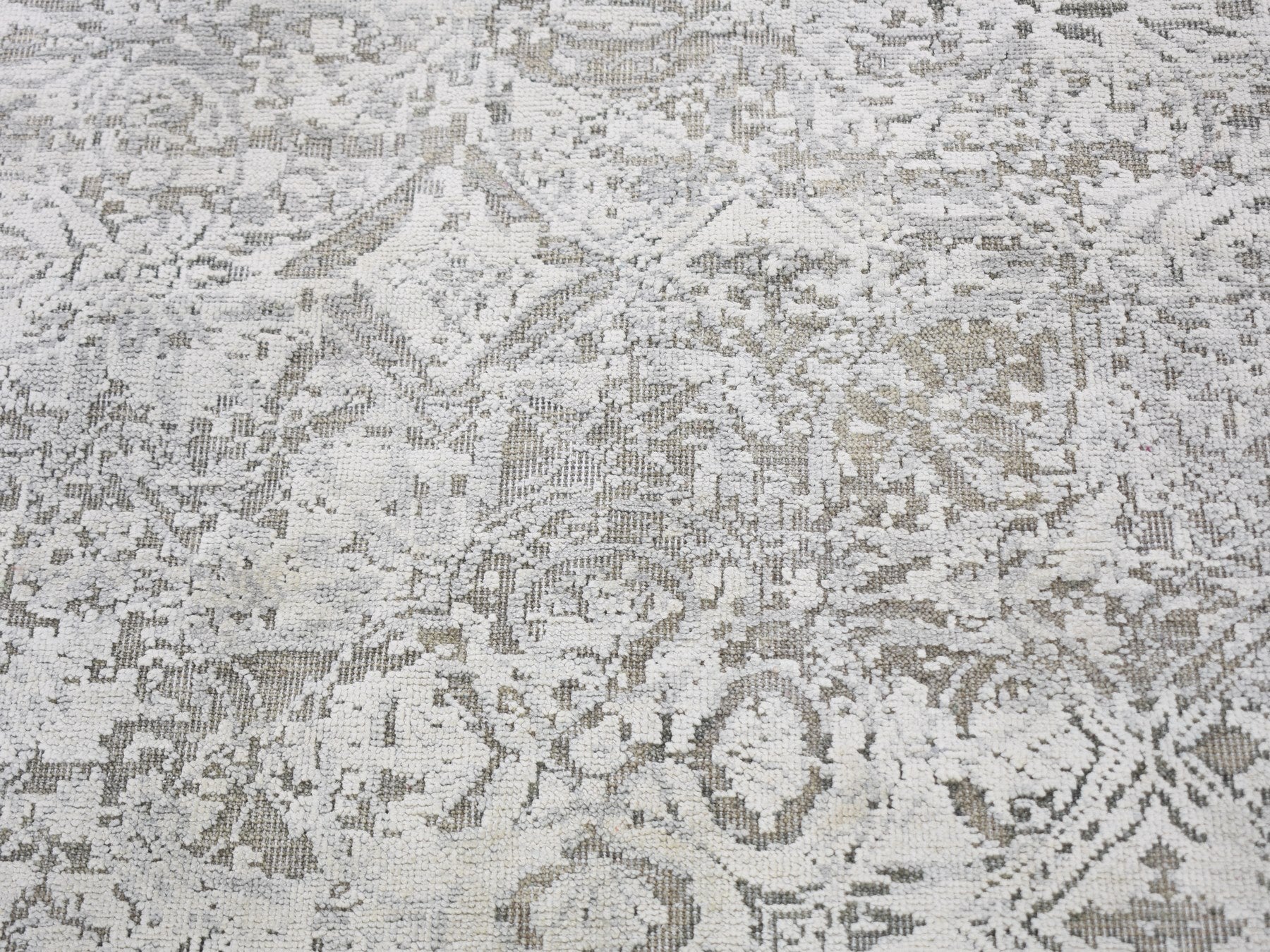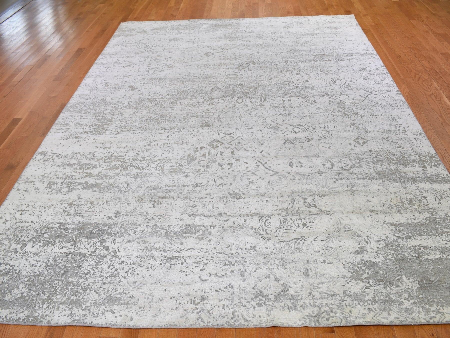 8'10" x 12'0" New Hand Knotted Ivory Wool & Silk Rectangle Oriental Rug - MOA10259248