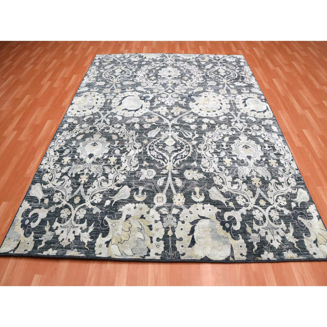 8'2" x 10'0" New Hand Knotted Blue Wool & Sari Silk Rectangle Oriental Rug - MOA10275121