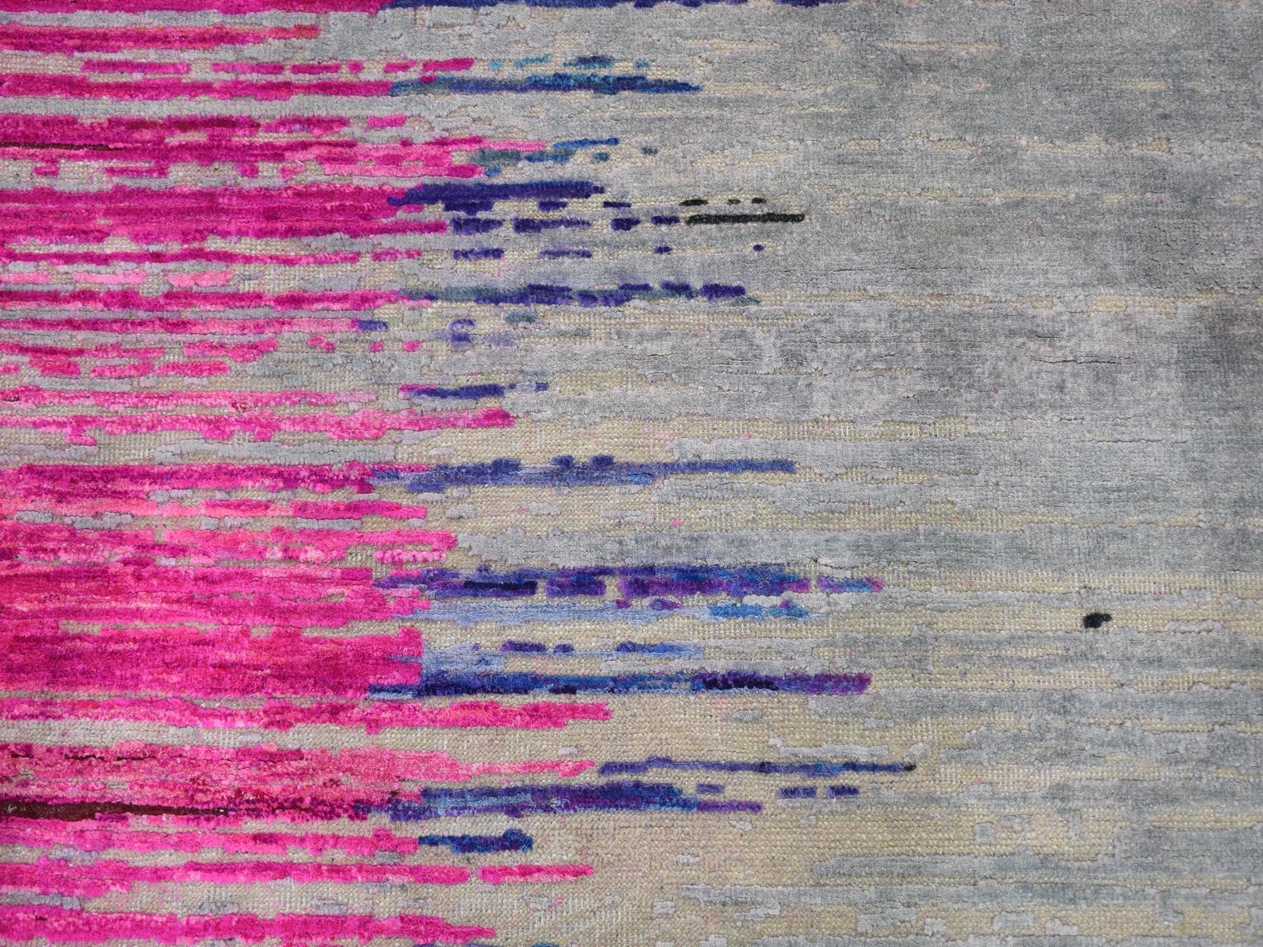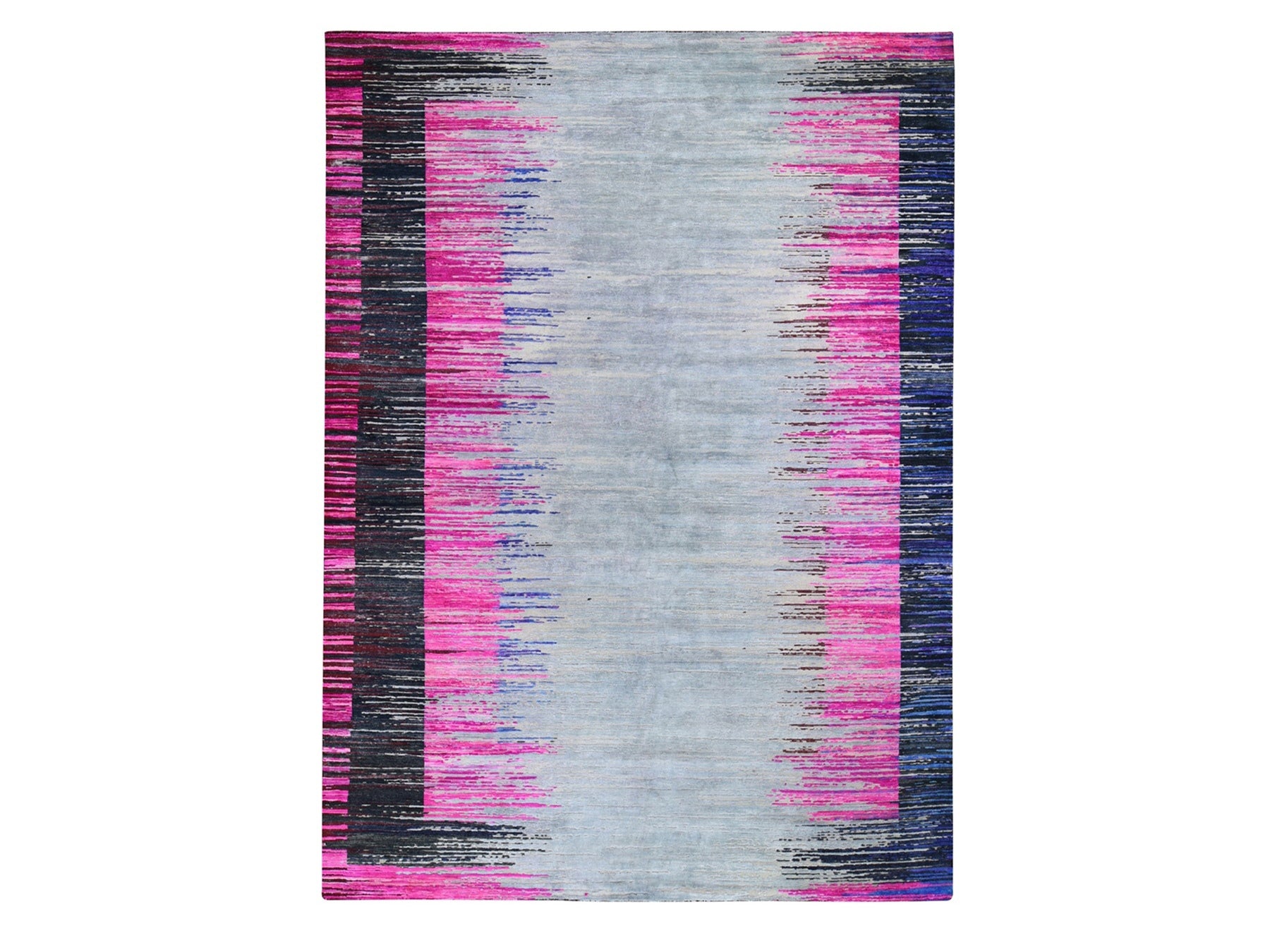 9'0" x 12'0" New Hand Knotted Grey Wool & Sari Silk Rectangle Oriental Rug - MOA10259229