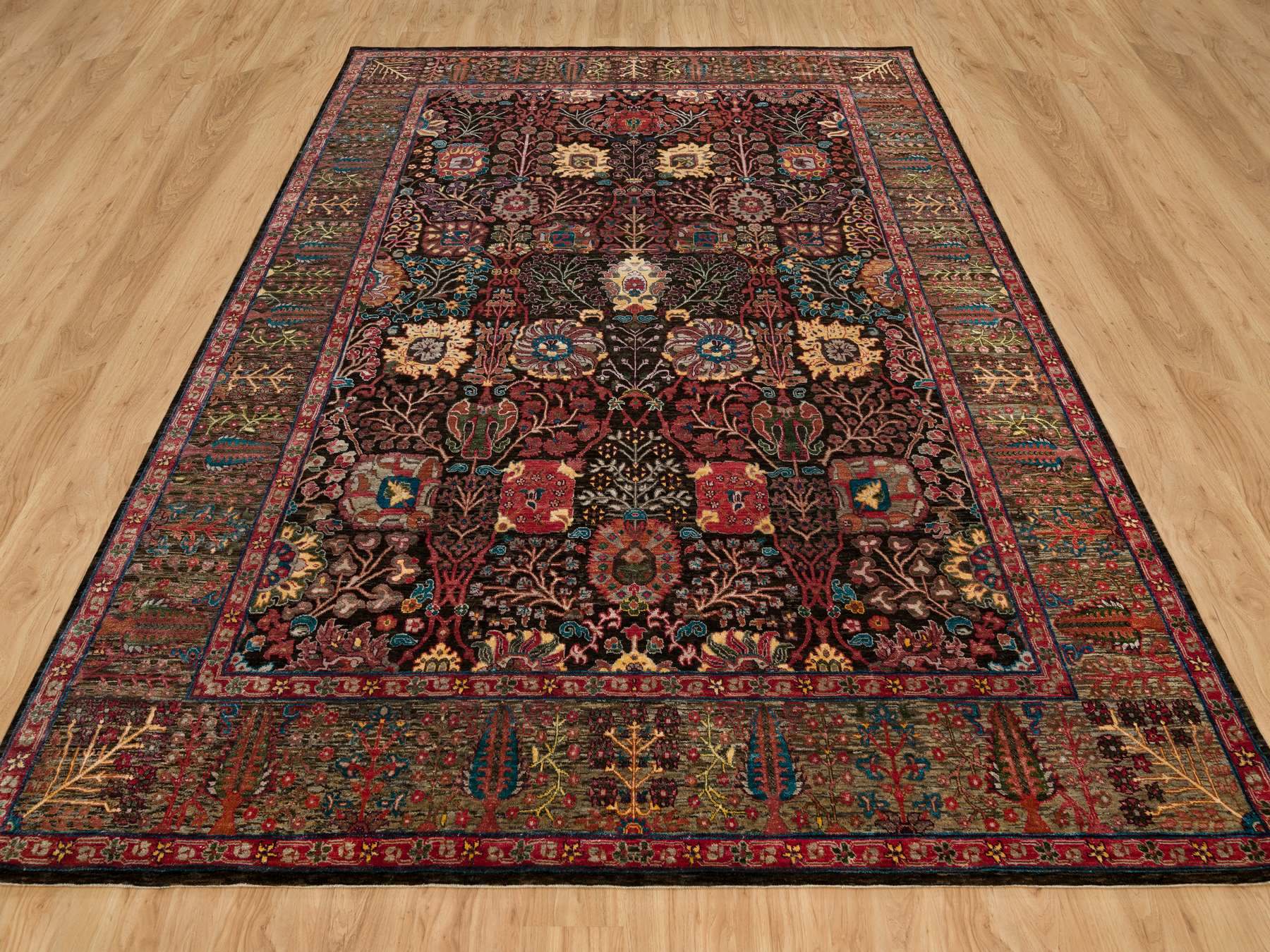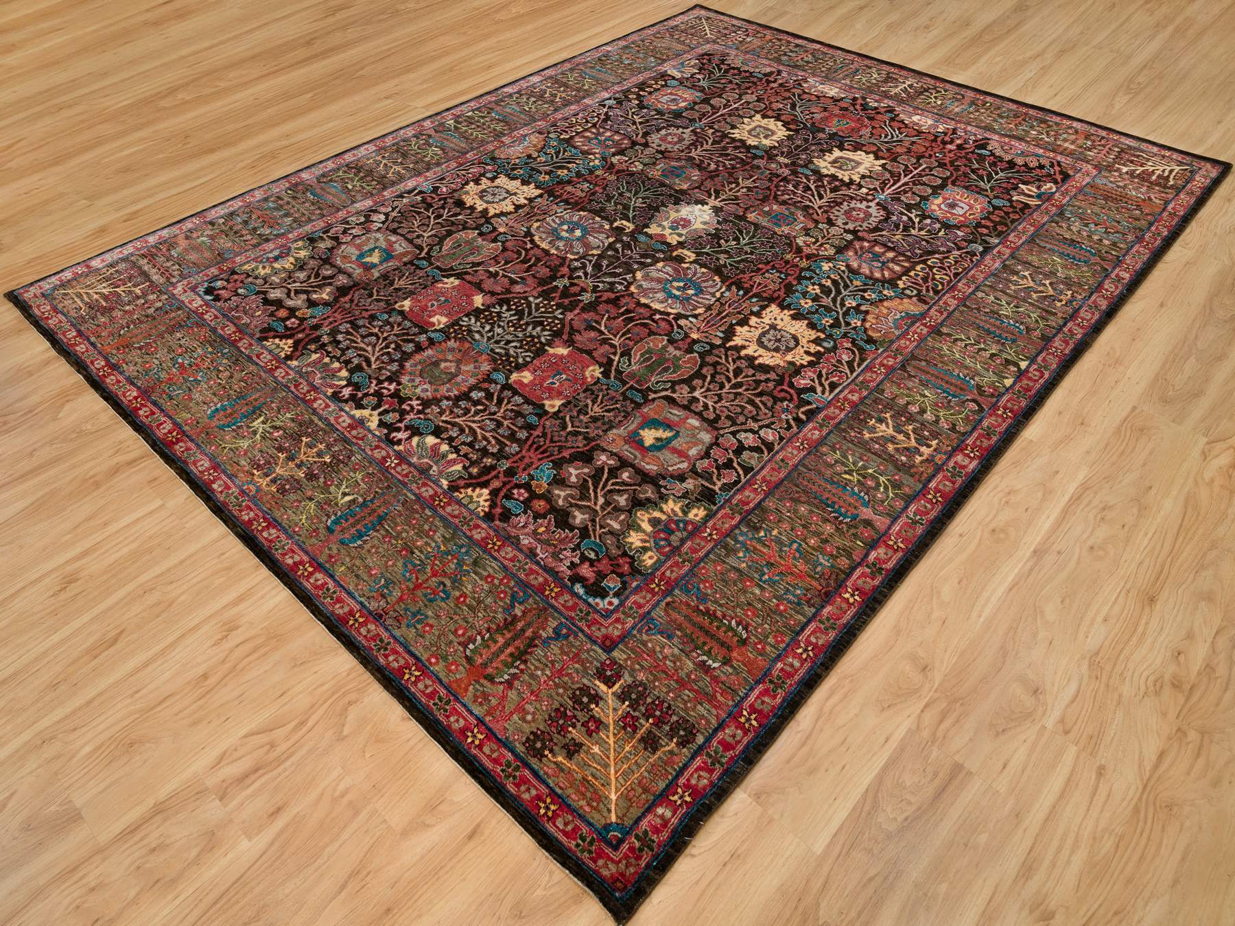 9'1" x 12'0" New Hand Knotted Black Wool & Silk Rectangle Oriental Rug - MOA10290223