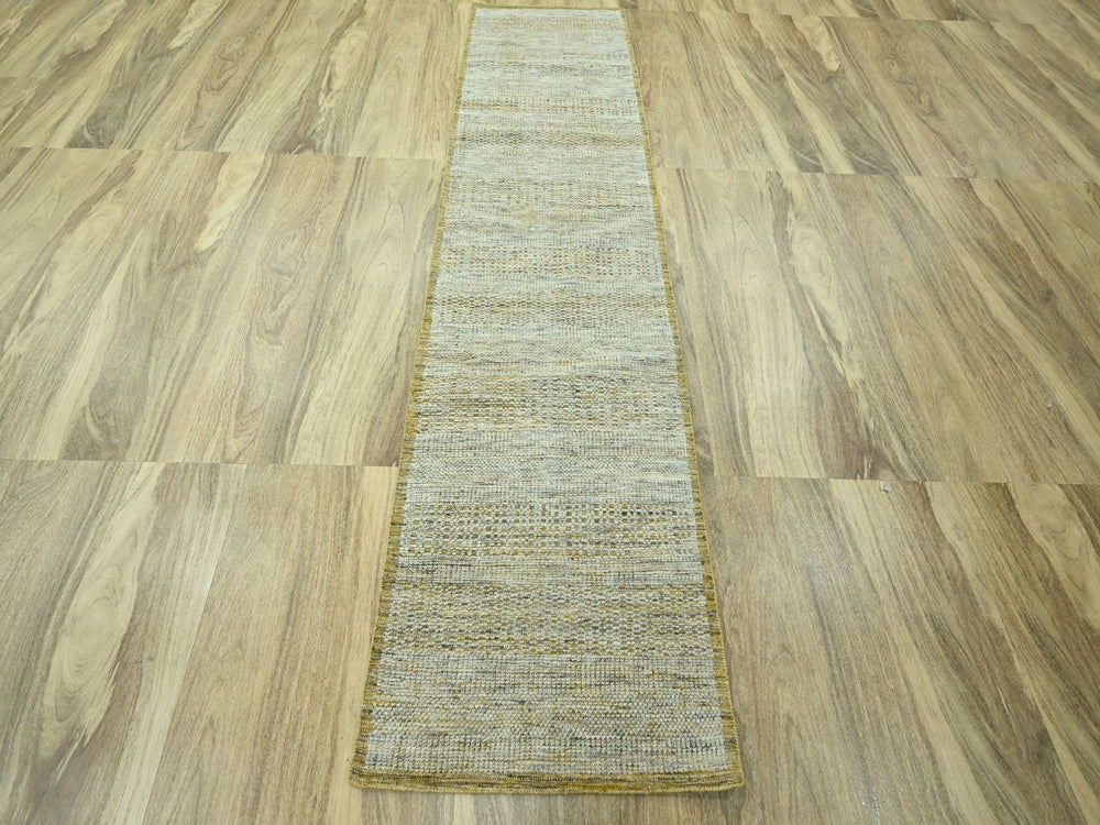 2'6" x 9'11" New Hand Knotted Yellow Wool Runner Oriental Rug - MOA10276753
