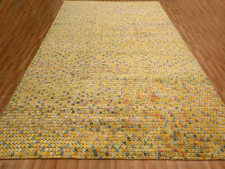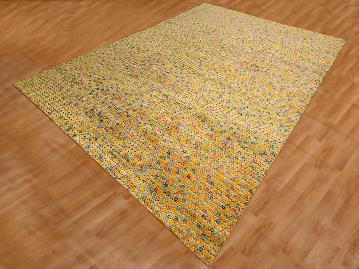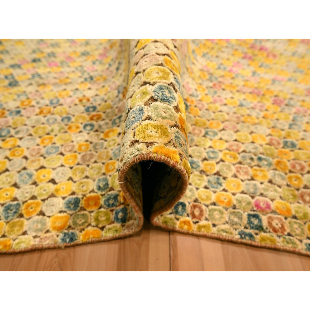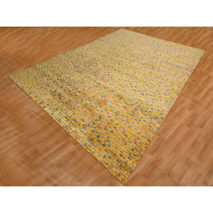 8'10" x 12'2" New Hand Knotted Yellow Sari Silk Rectangle Oriental Rug - MOA10276201
