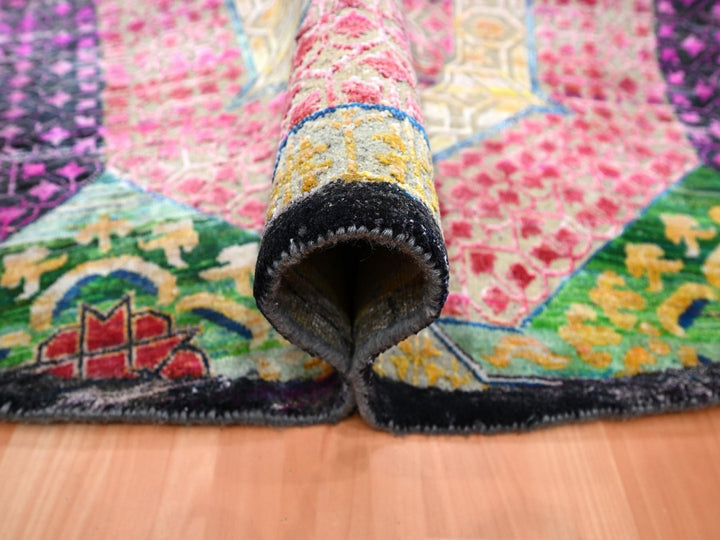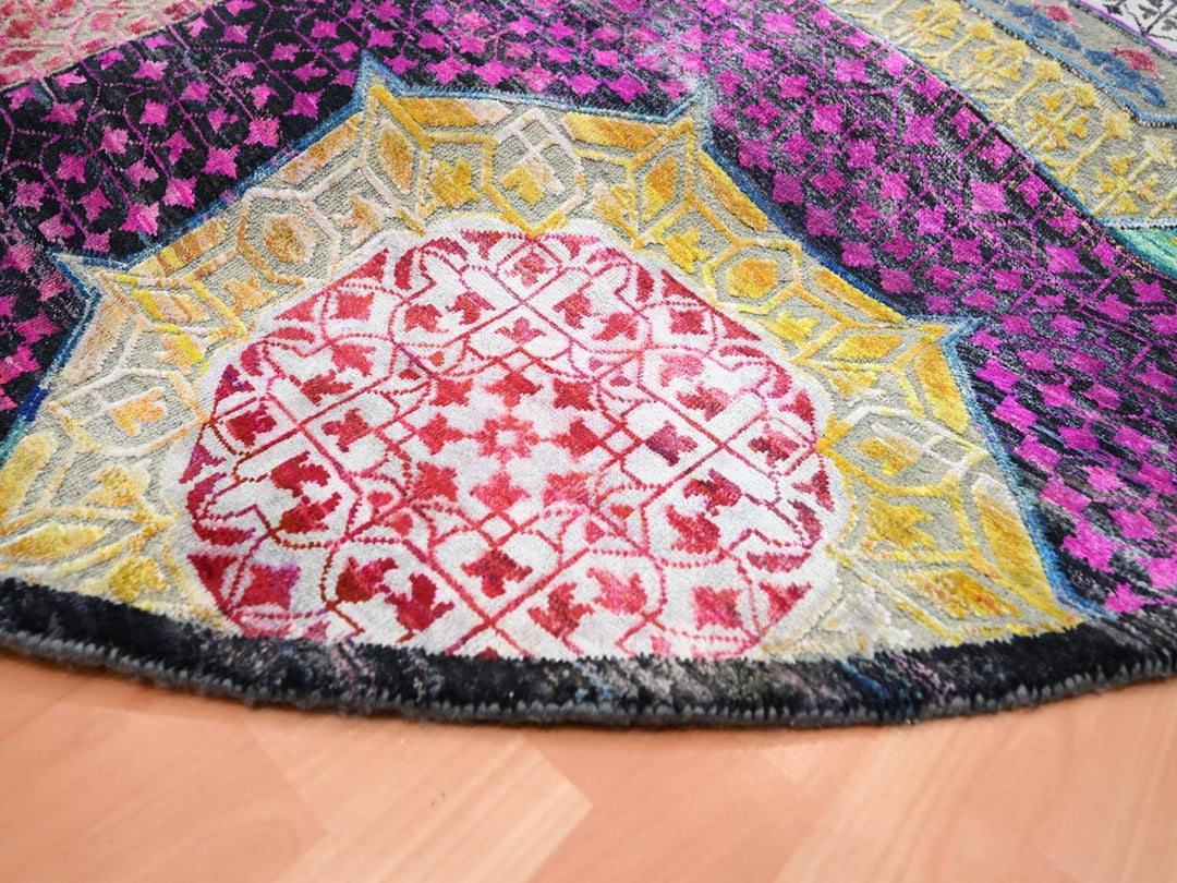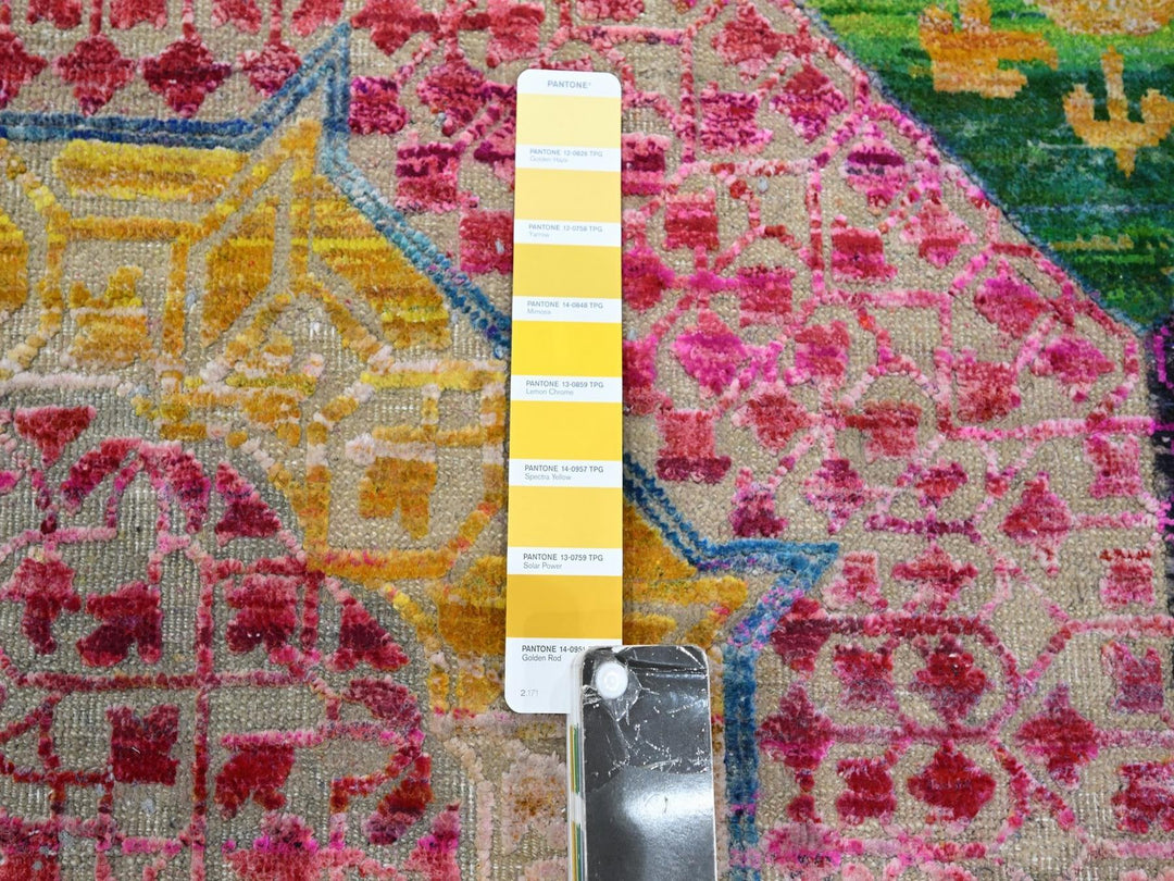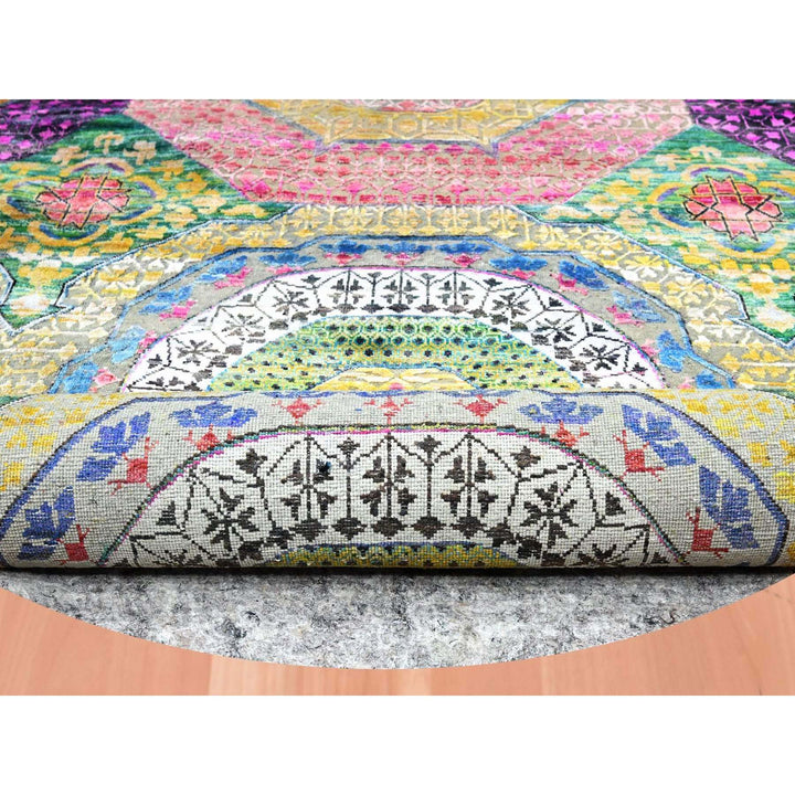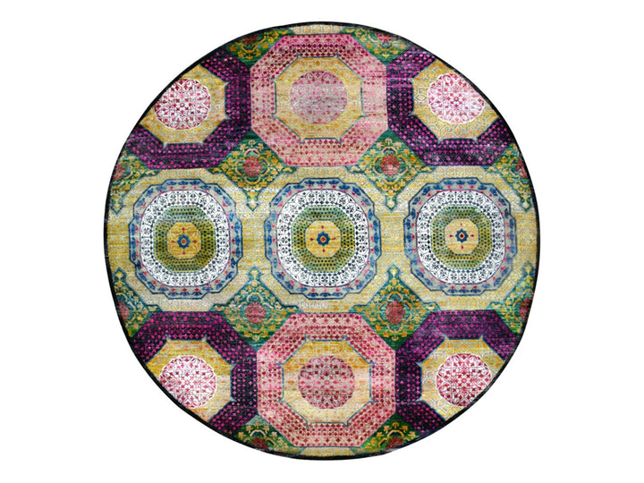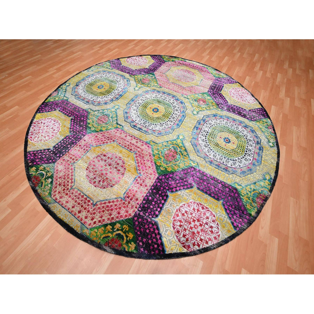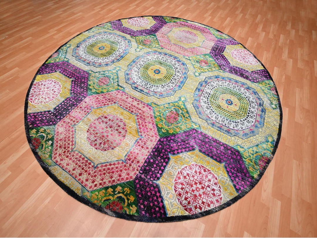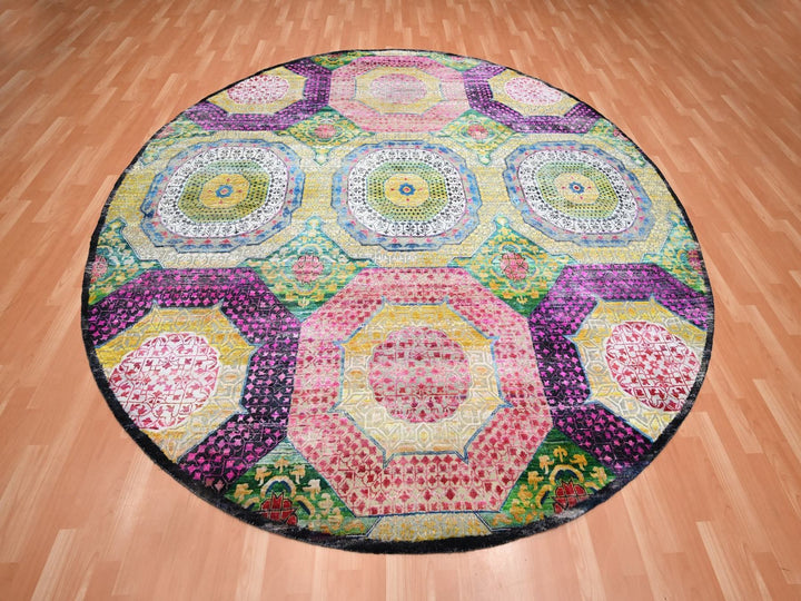 9'10" x 9'10" New Hand Knotted Yellow Wool & Silk Round Oriental Rug - MOA10275727