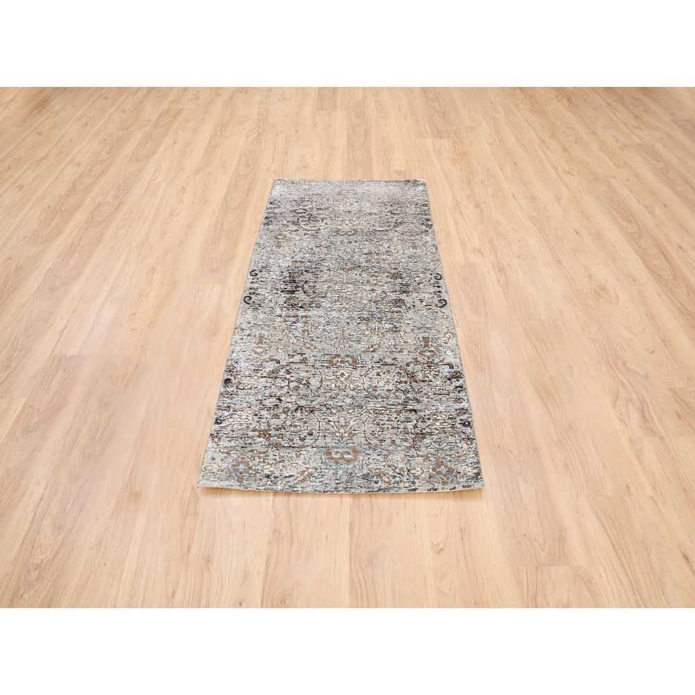 2'6" x 6'0" New Hand Knotted Grey Wool & Silk Runner Oriental Rug - MOA10263711