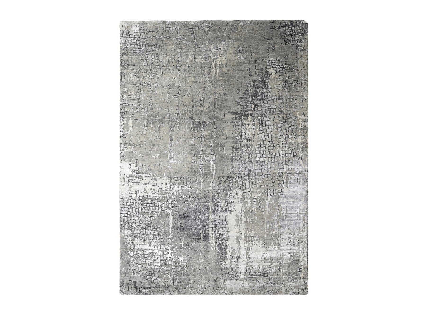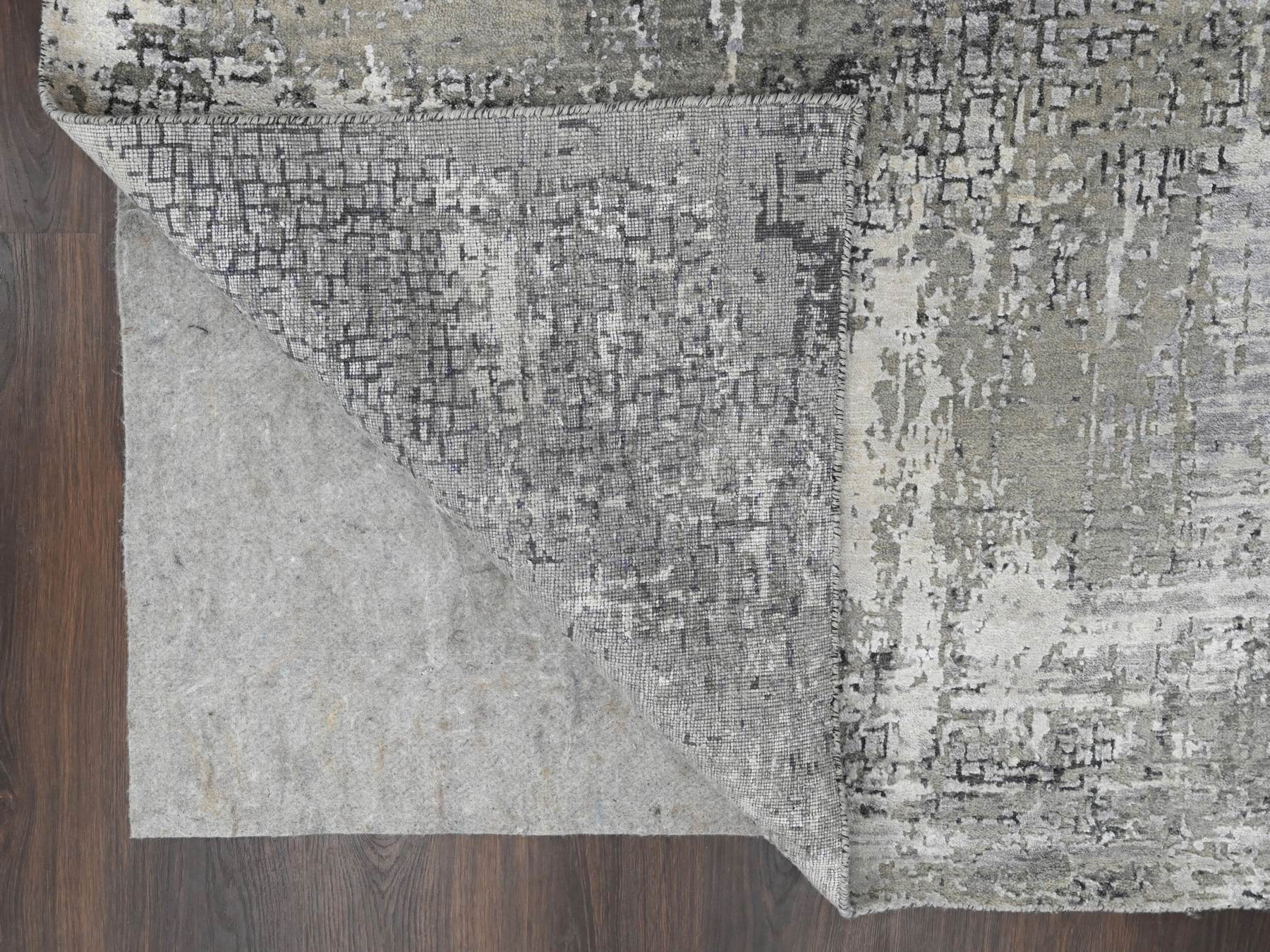 4'1" x 6'0" New Hand Knotted Grey Wool & Silk Rectangle Oriental Rug - MOA10284164