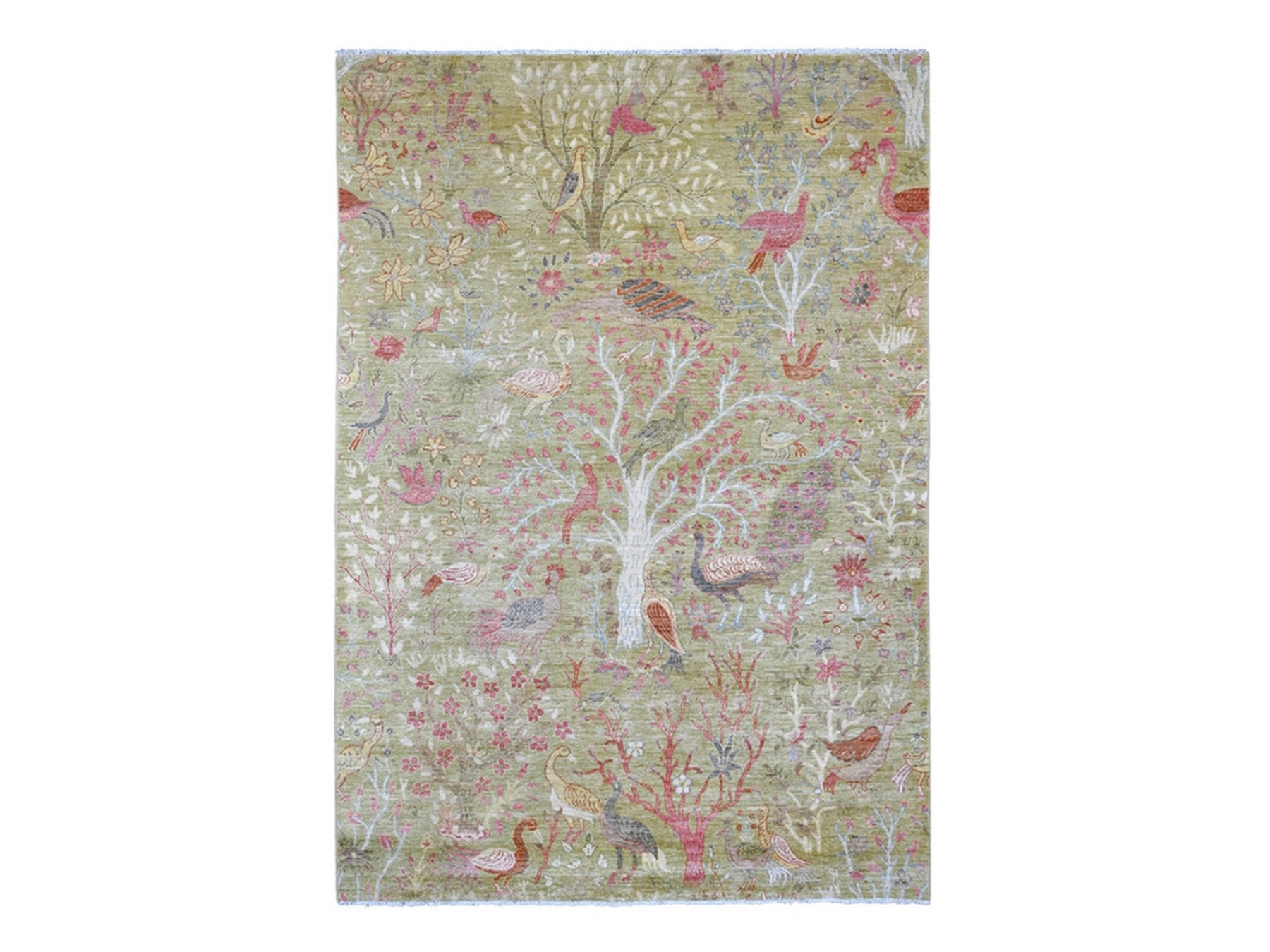 6'1" x 8'8" New Hand Knotted Green Wool Rectangle Oriental Rug - MOA10221086