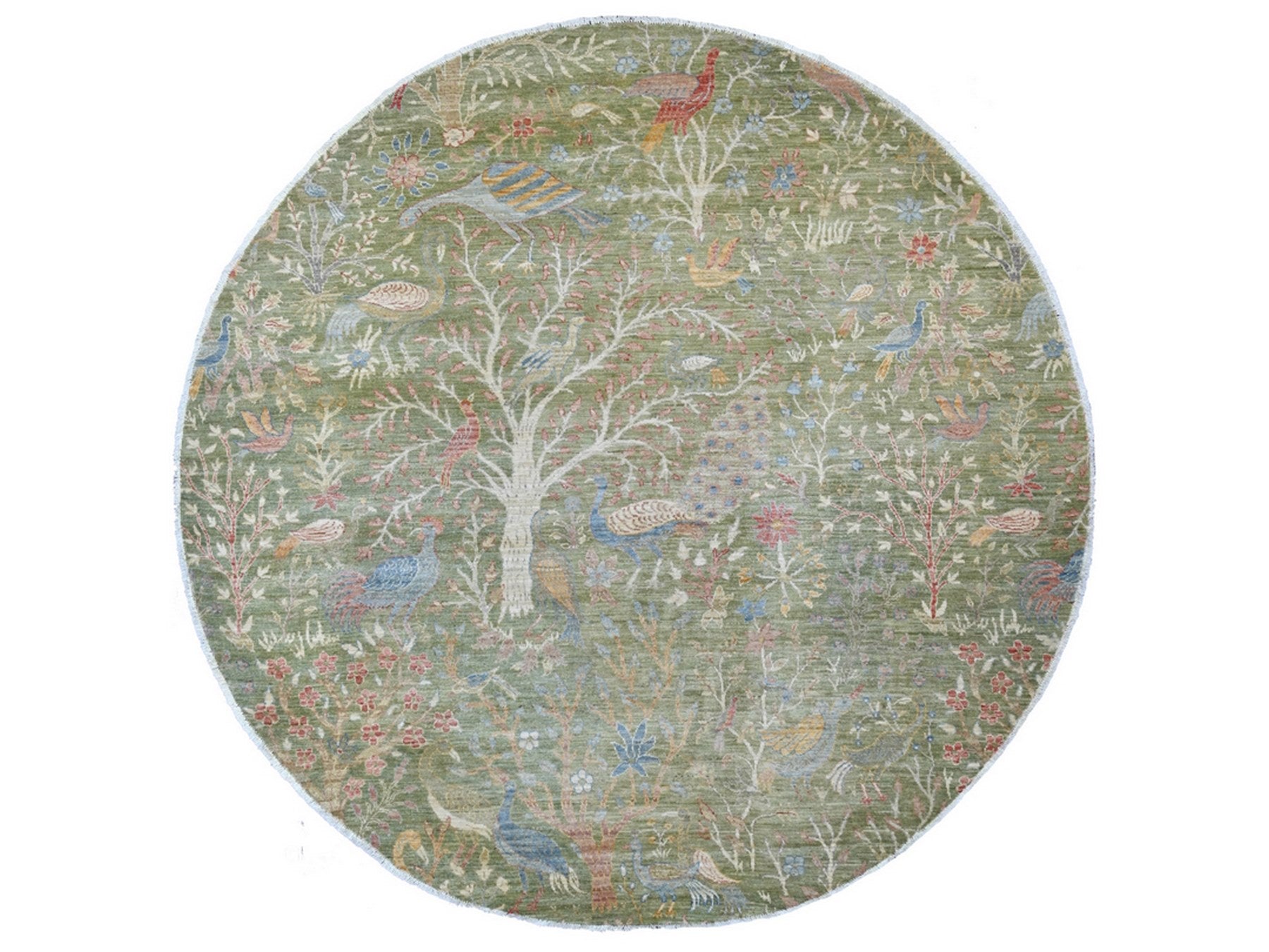 7'11" x 8'0" New Hand Knotted Green Wool Round Oriental Rug - MOA10221109