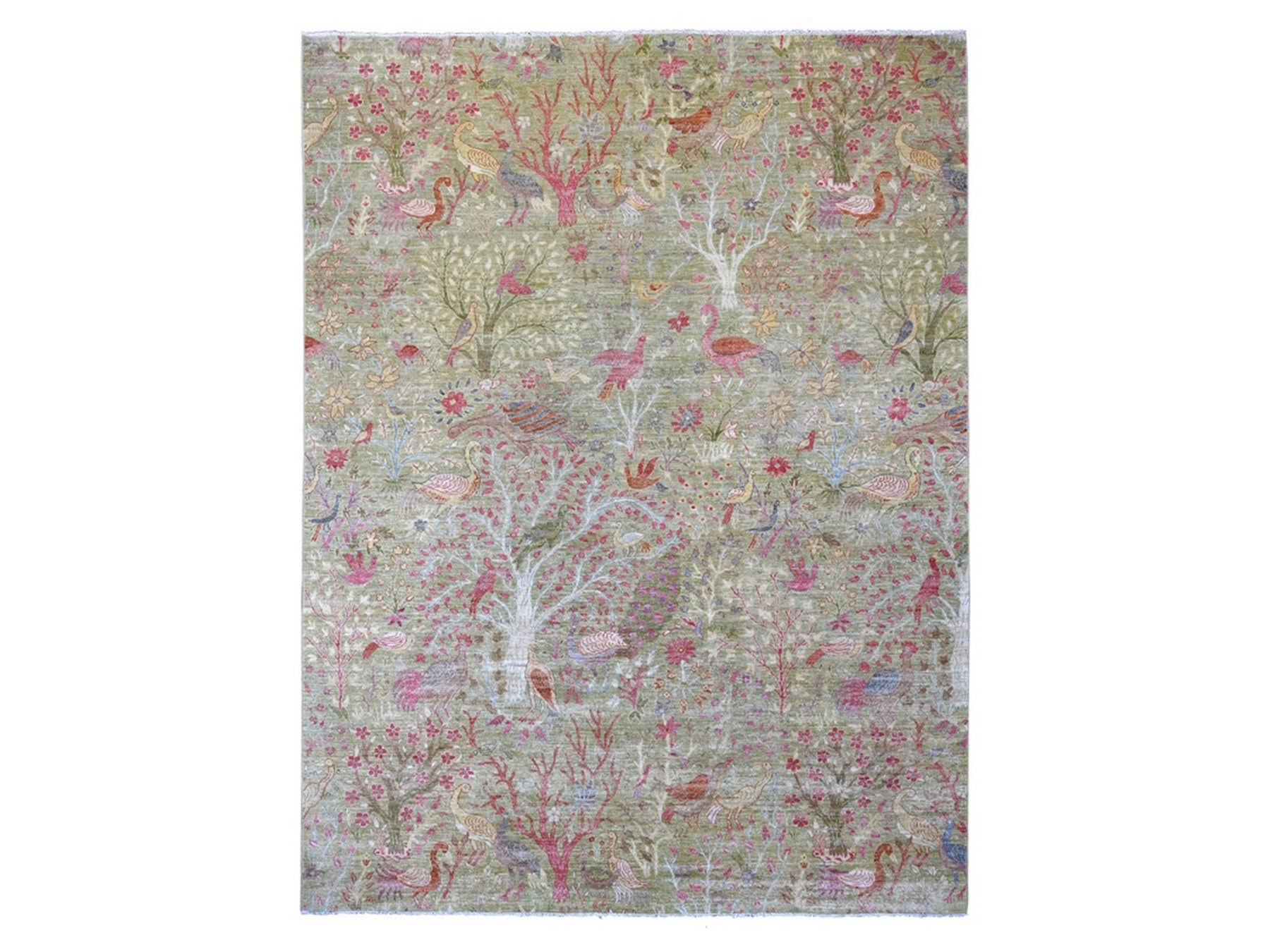 8'10" x 11'11" New Hand Knotted Green Wool Rectangle Oriental Rug - MOA10221102