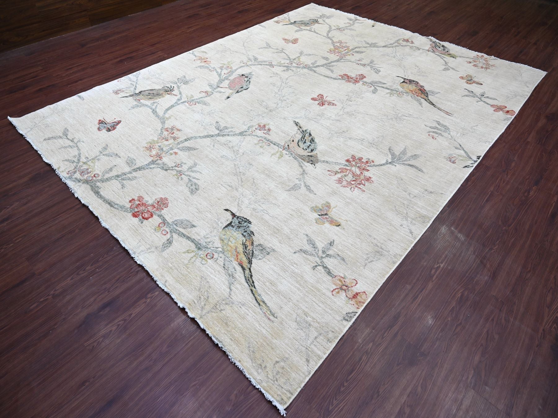 8'9" x 11'7" New Hand Knotted Ivory Wool Rectangle Oriental Rug - MOA10221118